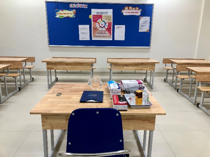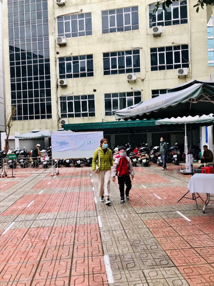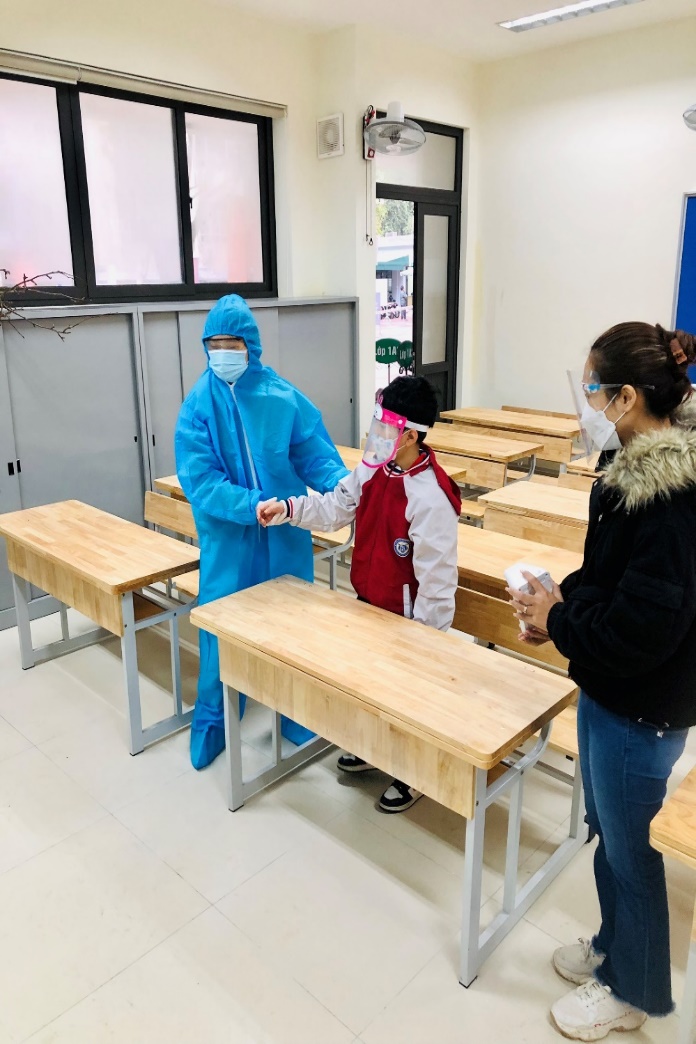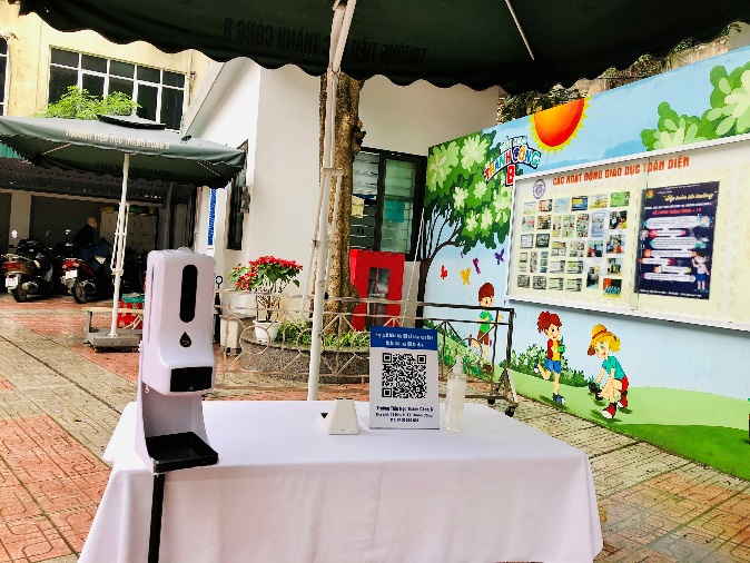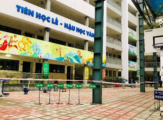 Nhà trường cũng chú trọng đến việc chuẩn bị đầy đủ cơ sở vật chất đảm bảo phòng dịch cho học sinh và giáo viên khi các em quay trở lại trường học trực tiếp. Có hướng dẫn và phân luồng cụ thể cho phụ huynh, học sinh khi đưa con đến trường cũng như khi đón con để đảm bảo giãn cách theo quy định.