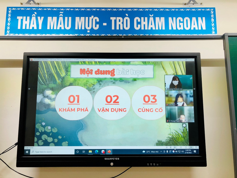 Để việc dạy và học không bị ảnh hưởng bởi các tình huống phát sinh của dịch, nhà trường đã triển khai lắp camera và máy tính tại các lớp học. Các giáo viên, học sinh không thể đến trường dạy và học trực tiếp do là F0, F1… vẫn tham gia các hoạt động của lớp học bằng hình thức trực tuyến.