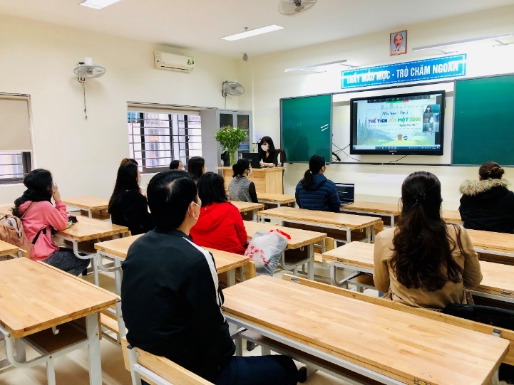 Nhằm giúp một số giáo viên chưa thành thạo khi dạy kết hợp hai hình thức này, BGH nhà trường đã cử giáo viên có kinh nghiệm trong việc dạy học trực tuyến kết hợp trực tiếp tập huấn cho các đồng nghiệp.