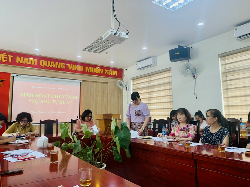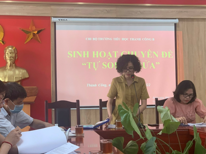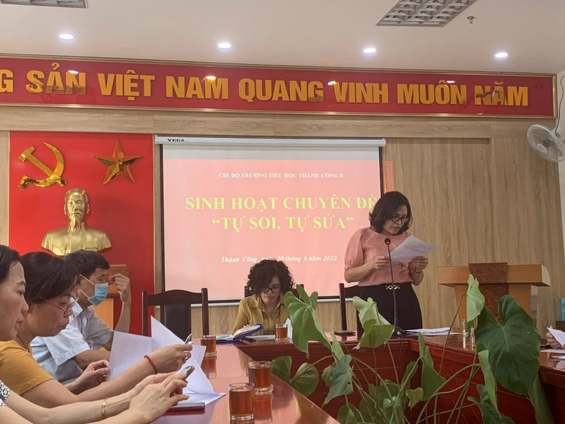 Đồng chí Lưu Thị Hồng Hạnh – Bí thư Chi bộ - Hiệu trưởng nhà trường có phần trình bày rất rõ ràng ở Bản cam kết “Tự soi – tự sửa” của bản thân đến tất cả các đảng viên. Đồng chí đã nêu bật được những kết quả cá nhân làm được, cũng như những tồn tại cần khắc phục để cùng tập thể giáo viên nhà trường tiếp tục gặt hái nhiều thành tích ở các năm học tiếp theo.