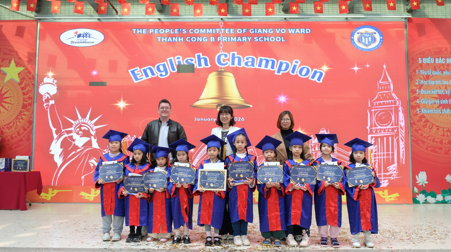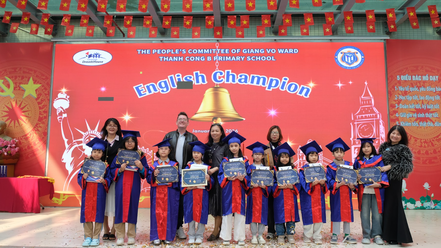 Nhà trường trân trọng cảm ơn Trung tâm Ngoại ngữ Dream House, quý thầy cô giáo, các bậc phụ huynh và đặc biệt là các em học sinh đã chung tay tạo nên một ngày hội học tập sôi nổi, giàu cảm xúc và đầy ý nghĩa. 💙
