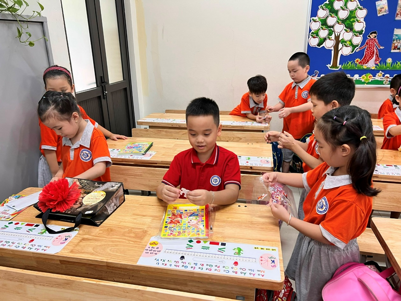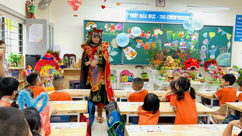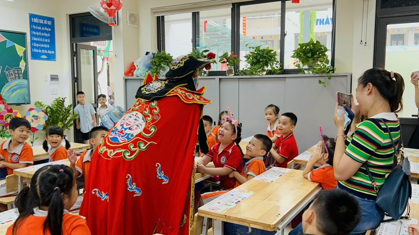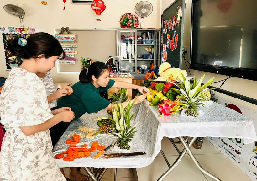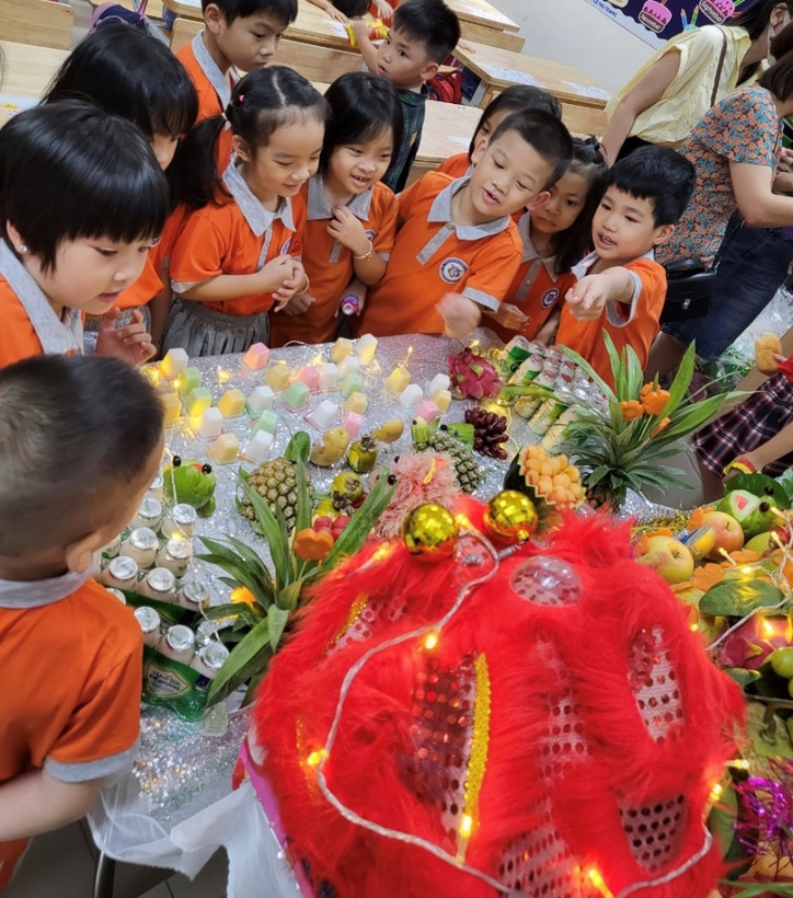 Khi mâm cỗ vừa hoàn thành cũng là lúc từng ánh mắt trầm trồ thán phục của các bạn nhỏ xuất hiện khiến cô giáo và các bà mẹ thấy hạnh phúc hơn bao giờ hết.