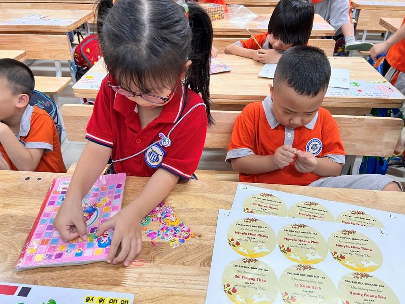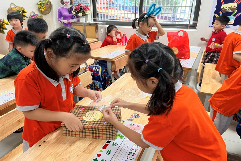 Phần quan trọng nhất trong chương trình Trung thu, chính là phần các bạn tự tay gói những món quà nhỏ đã được chuẩn bị và tự trang trí túi quà để gửi tặng những anh chị có hoàn cảnh khó khăn ngay trong trường Tiểu học Thành Công B.
