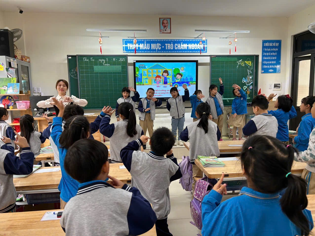 Điều đặc biệt khiến tiết học trở nên “có một không hai” là việc cô giáo kết hợp trí tuệ nhân tạo (AI) vào giảng dạy thông qua phần mềm Flow, Veo 3 và Suno. Với Flow,Veo 3, học sinh được quan sát những hình ảnh sinh động của người bạn đồng hành Gà con dễ thương. Còn Suno giúp tạo âm thanh nền vui tươi, gắn liền với từng hoạt động, khiến tiết học trở thành một “bữa tiệc âm thanh” đầy hứng khởi.