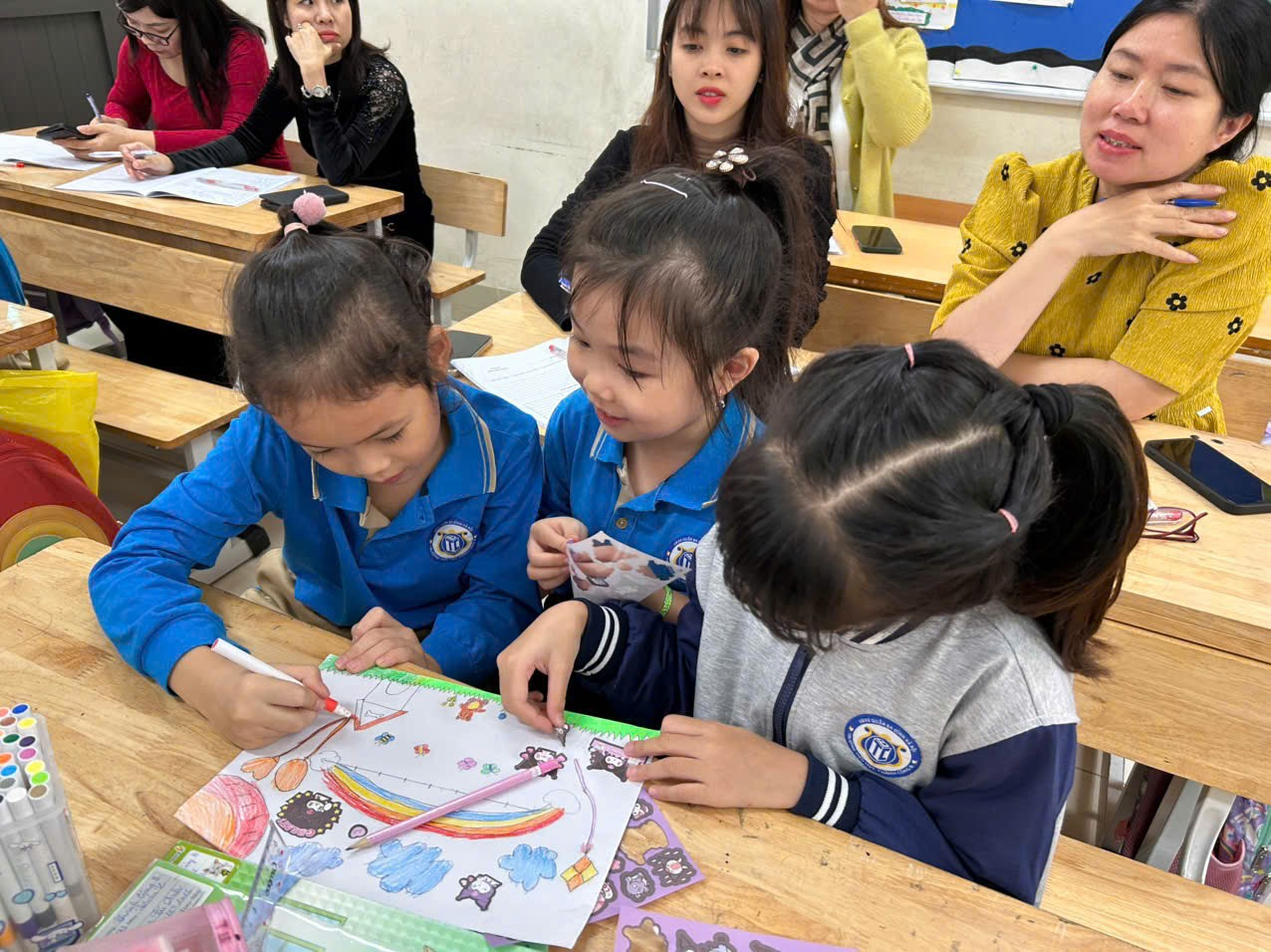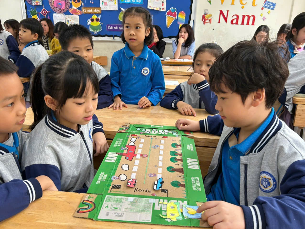 Các nhóm học sinh say sưa hợp tác, thảo luận, trình bày kết quả bằng sự tự tin, niềm hứng thú với các hoạt động. Không khí lớp học rộn ràng, nhưng vẫn đầy kỷ luật và sáng tạo. Mỗi học sinh đều được thể hiện năng lực riêng, được khuyến khích đặt câu hỏi, tự tìm lời giải bằng trải nghiệm của mình.