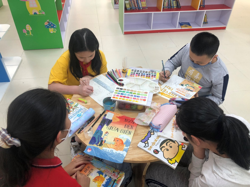 Các con học sinh yêu thích sách và vẽ tranh còn được tham gia cuộc thi “Cọ xinh sáng tạo” được phát động từ ngày 13/4 đến ngày 25/4. Trong cuộc thi này, các con sẽ lựa chọn câu danh ngôn về sách bằng tiếng Việt hoặc tiếng Anh để viết, vẽ, trang trí nhằm lan tỏa cảm hứng đọc sách cho mọi người. Dù cuộc thi chưa đến ngày kết thúc nhưng thư viện trường đã nhận được nhiều bài vẽ có chất lượng. Các bài vẽ này sẽ được các con trang trí trong lớp học hoặc góc học tập như một lời nhắn nhủ các con tầm quan trọng của việc đọc sách.