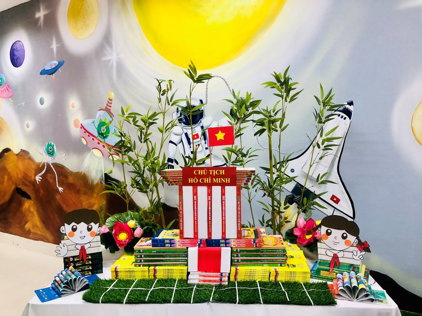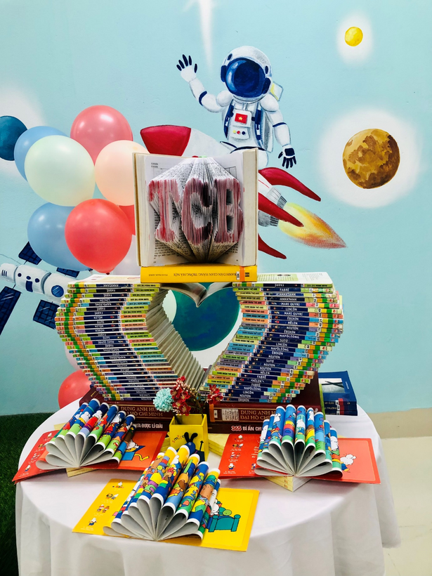 Các cô giáo cũng đóng góp vào Ngày Sách và Văn hoá đọc của nhà trường bằng hoạt động trưng bày, xếp sách nghệ thuật. Chỉ trong thời gian ngắn các cô đã sáng tạo được không gian nghệ thuật đặc sắc và thu hút người xem. Gần 300 cuốn sách đã được bàn tay khéo léo của các cô xếp sắp thành hình chữ Book nổi bật, mô hình lăng Bác Hồ quen thuộc với lũy tre ngà, hình trái tim uốn lượn từ sách,... Cô Nguyễn Thị Đào còn rất khéo tay khi sử dụng nghệ thuật gấp giấy Origami từ sách để tạo nên hình bản đồ Việt Nam, hình trái tim, chữ TCB viết tắt tên của trường,…Các mô hình xếp sách vẫn sẽ được lưu giữ trong thư viện nhà trường trong tuần tiếp theo để các thầy cô và các con học sinh được thăm quan.