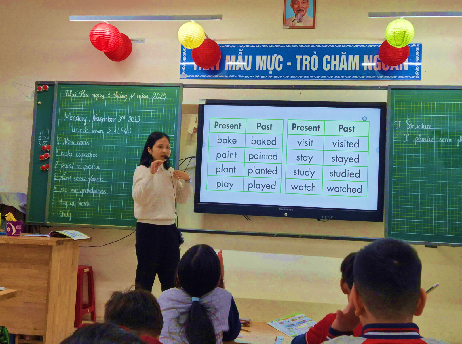 Trong mỗi tiết dạy, giáo viên chú trọng tăng cường hoạt động thực hành ngôn ngữ thông qua trò chơi, tình huống giao tiếp và bài luyện nghe – đọc sinh động, có hình ảnh trực quan. Nhờ đó, học sinh được trải nghiệm học tiếng Anh một cách nhẹ nhàng, hứng thú, hình thành thói quen phản xạ và sử dụng ngôn ngữ một cách tự nhiên.