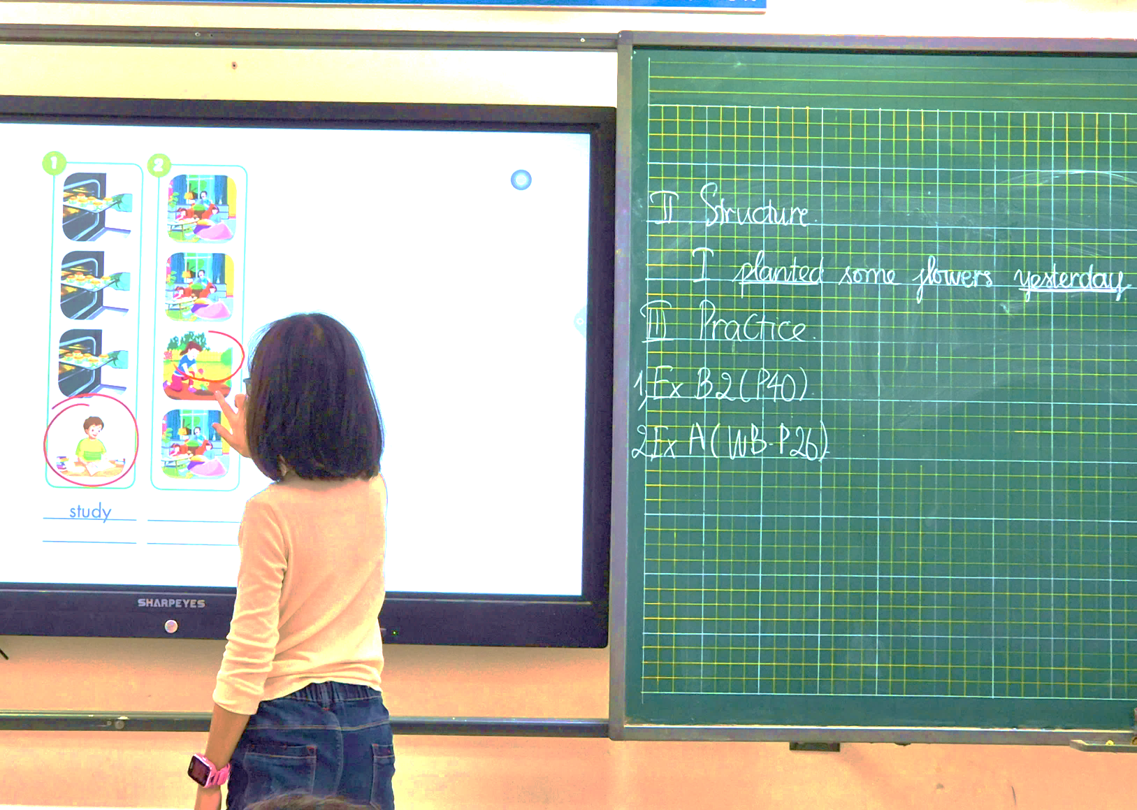 HS tích cực tham gia tương tác với các bài tập trên màn hình thông minh