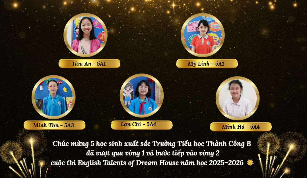 TOẢ SÁNG BẢN LĨNH CHINH PHỤC SÂN CHƠI TIẾNG ANH Học sinh Trường Tiểu học Thành Công B tham gia cuộc thi “English Talents of Dream House” năm học 2025 – 2026