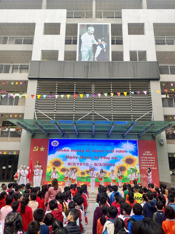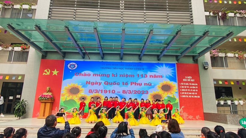 Kết thúc chương trình là những tiết mục văn nghệ vô cùng đặc sắc của các cô giáo và các bạn nhỏ xinh xắn lớp 1A5, 2A4. Những giai điệu, lời ca ngọt ngào, những động tác múa dễ thương của các con như một món quà yêu thương gửi tới các cô giáo – những người mẹ thứ hai của mình. Xin kính chúc toàn thể cán bộ, giáo viên, nhân viên nữ trong nhà trường luôn trẻ trung, xinh đẹp và hạnh phúc trong cuộc sống, chúc các con học sinh nữ luôn vui tươi, học tập tốt! Chúc cô – trò nhà trường cùng thi đua gặt hái thêm nhiều thành tích làm rạng danh mái trường Tiểu học Thành Công B thân yêu!