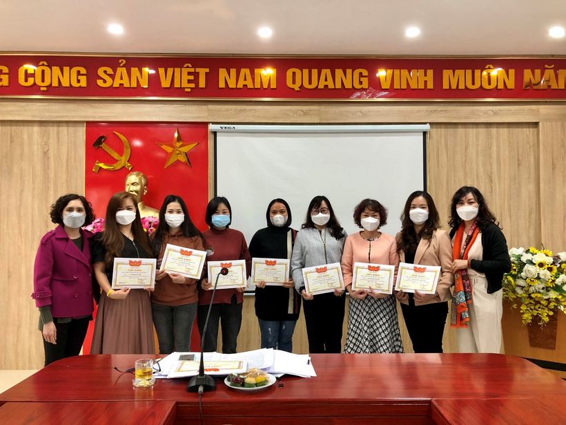 Chiều ngày 01/04, tại buổi họp Hội đồng nhà trường, cô Lưu Thị Hồng Hạnh - Hiệu trưởng nhà trường phát biểu tổng kết Hội giảng mùa xuân năm học 2021-2022, tuyên dương và trao giấy khen cho 25 cô giáo có tiết dạy đạt giải: