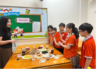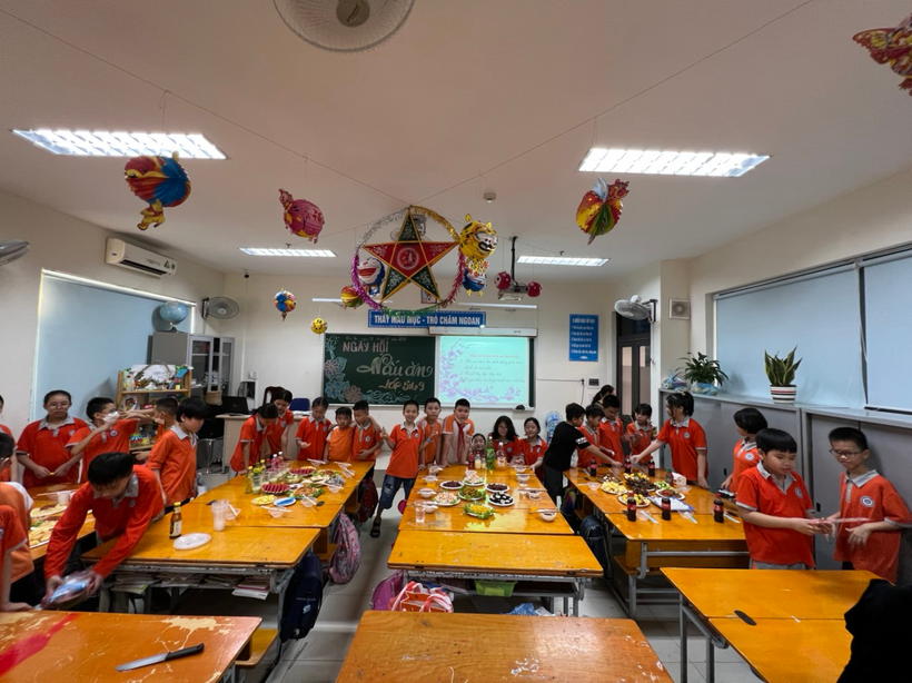 Chia sẻ về tiết học này, cô giáo Lưu Mai Hoa cho biết:" Để chuẩn bị cho giờ học, tôi đã phân công các em học sinh lớp 5A9 thực hành theo nhóm. Tự các em cùng nhau lên thực đơn, đi chợ mua đồ, sơ chế tại nhà sau đó mang đến lớp thực hành, bày món".