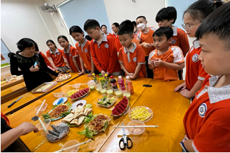 "Đây là một tiết học rèn luyện cả kĩ năng thực hành và kĩ năng sống cho các em. Nhìn các em tự tay làm món ăn, tỉ mỉ trong từng khâu trang trí, biết đeo găng tay giữ gìn vệ sinh, vui vẻ cười nói cùng nhau khi nấu ăn, tôi vui khi các em đã có khoảng thời gian tuyệt vời cùng nhau".