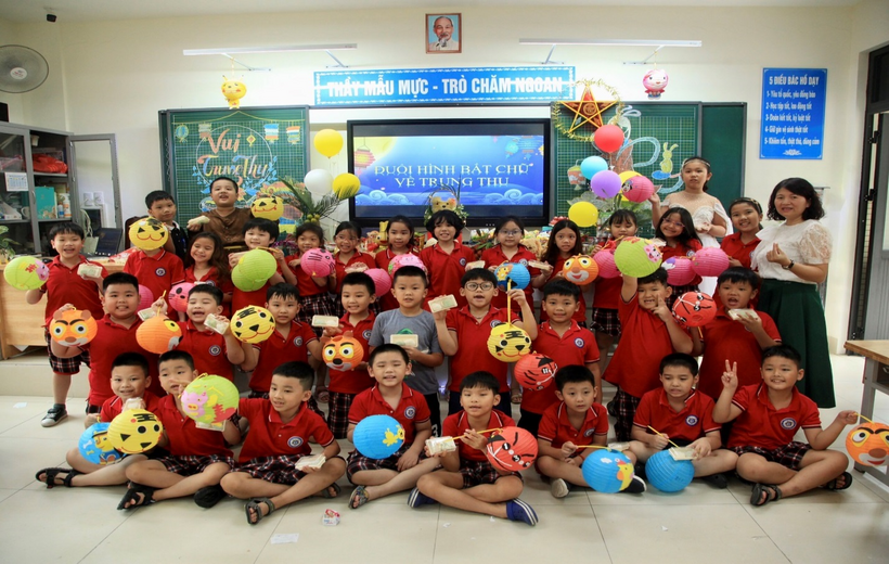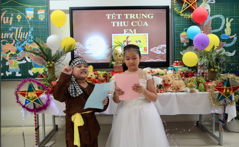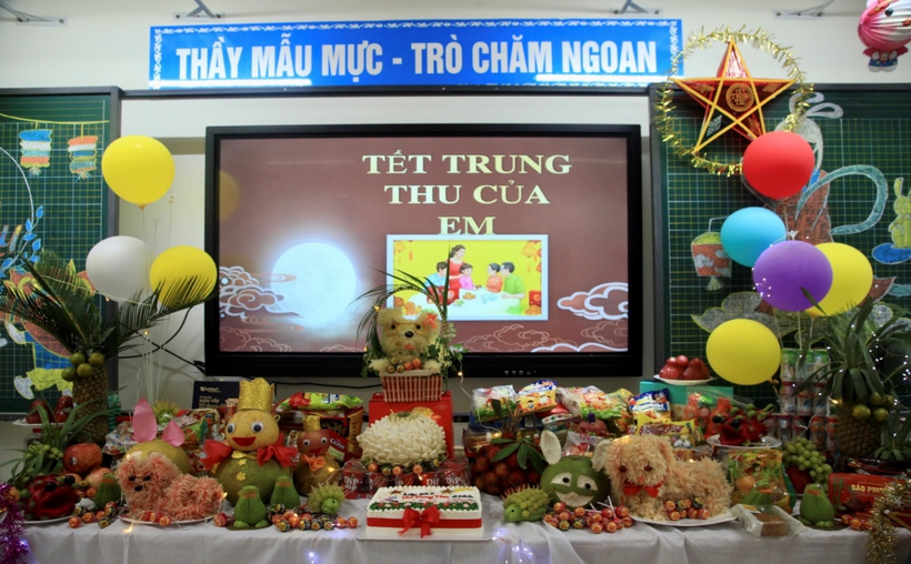 Chưa đến Trung Thu mà chúng mình bàn bạc với nhau trước cả tuần. Cả nhà cùng háo hức rộn ràng chờ đón giờ phút đó. Nào thì nhờ mẹ làm chó bưởi, nhờ bố dạy làm đèn ông sao, rồi nỉ non mời ba mẹ đến lớp chụp ảnh xinh hộ. Cuối cùng sân trường cũng rộn ràng tiếng trống ếch vui tai. Mâm cỗ trung thu siêu dễ thương và đầy màu sắc được cả lớp chung tay sáng tạo: