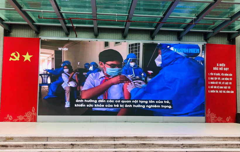 Theo ghi nhận, các khâu trong quá trình tiêm phòng diễn ra theo đúng quy trình, đáp ứng tốt các yêu cầu theo quy định. Nhà trường đã bố trí các khu vực theo đúng quy trình một chiều từ tiếp đón, khám sàng lọc, tiêm và theo dõi sau tiêm; chuẩn bị sẵn sàng, đầy đủ hộp thuốc cấp cứu phản vệ và trang thiết bị cấp cứu, đội phản ứng nhanh, xe cấp cứu... Các con HS được xếp hàng tuần tự, đảm bảo dãn cách; được các bác sĩ tư vấn, khám sàng lọc. HS tiêm được giới thiệu về tên vắc-xin, số lô sản xuất, hạn sử dụng rõ ràng. Quá trình tiêm có sự chứng kiến của CMHS. Sau khi tiêm xong, HS ngồi nghỉ ngơi, theo dõi sức khỏe 30 phút, không học sinh gặp phản ứng nặng, tất cả đều khỏe mạnh, bình thường về nhà.