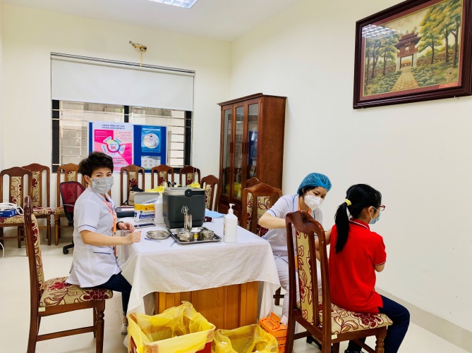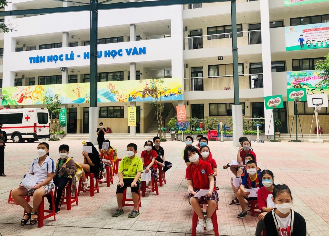 Ngay sau khi nhận được các văn bản quy định, hướng dẫn về việc tiêm phòng cho trẻ dưới 12 tuổi của Bộ Y tế, dưới sự hướng dẫn của Trạm y tế phường Thành Công, nhà trường đã tiến hành thông báo cho CMHS các học sinh khối 4 – 5 đăng kí tiêm phòng Covid – 19 tự nguyện đồng thời chuẩn bị CSVC theo đúng yêu cầu để phục vụ việc tiêm chủng cho HS tại trường. Trước mắt, sáng 22/4 tổ chức tiêm cho HS khối 4 – 5, sau đó tiếp tục tổ chức tiêm cho HS các khối còn lại.