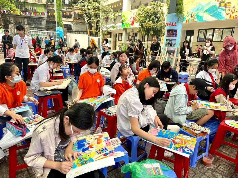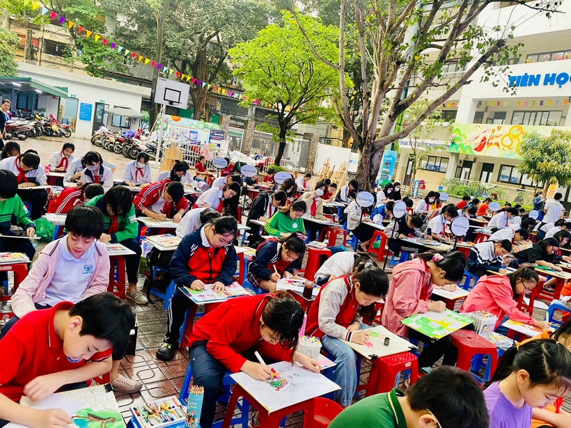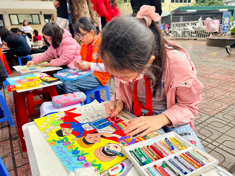 Với các chất liệu phong phú như bút chì, bút sáp, màu nước …, các em đã tạo nên những tác phẩm hội họa ý nghĩa.