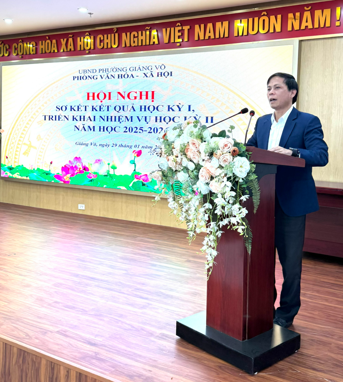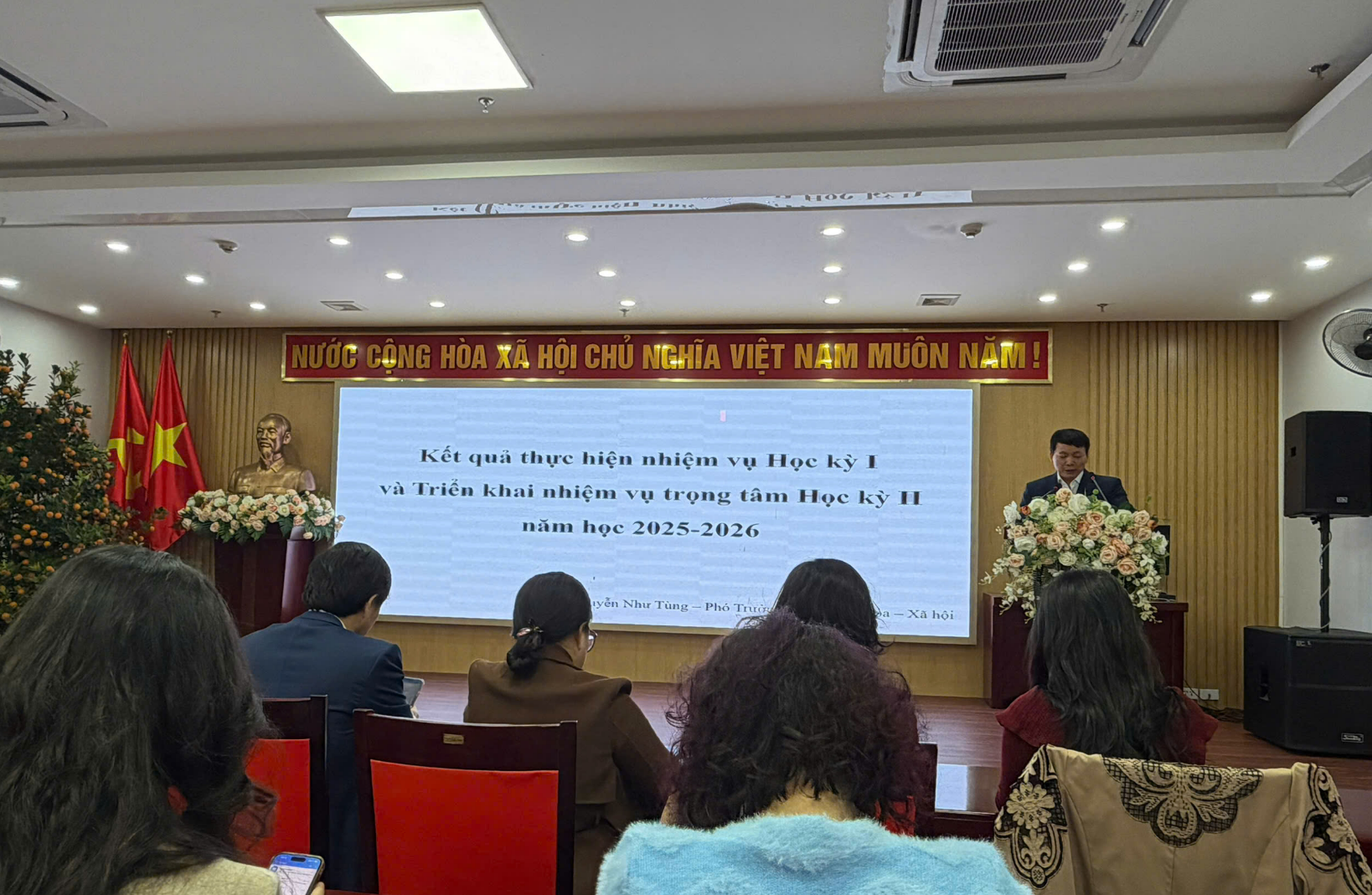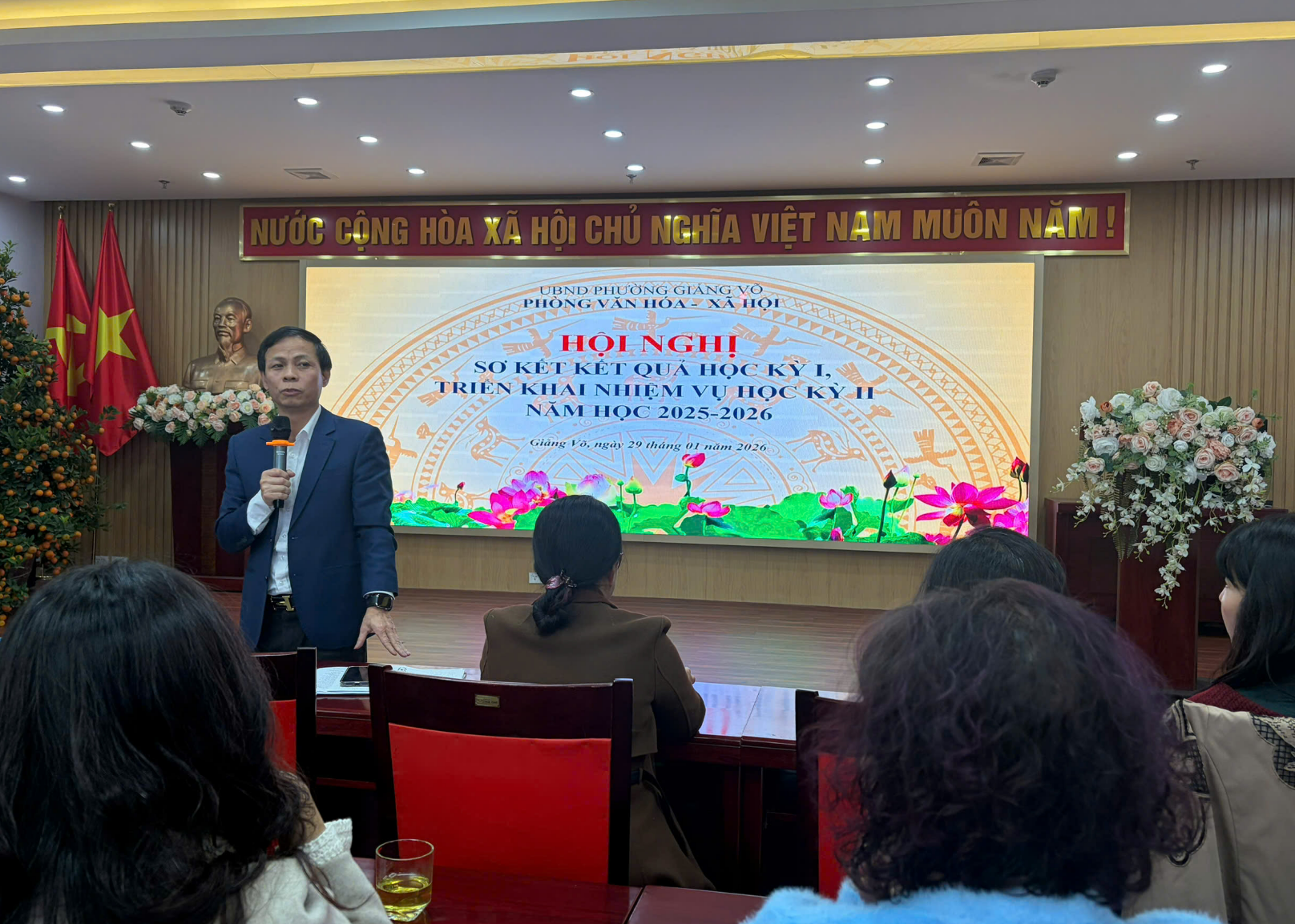 Tại hội nghị, các đại biểu đã được nghe báo cáo sơ kết học kỳ I và phương hướng nhiệm vụ học kỳ II do đồng chí Nguyễn Như Tùng – Phó Trưởng phòng Văn hóa và Xã hội trình bày. Báo cáo đã đánh giá toàn diện kết quả thực hiện nhiệm vụ học kỳ I, đồng thời xác định rõ những nhiệm vụ trọng tâm cần triển khai trong học kỳ II nhằm tiếp tục nâng cao chất lượng giáo dục trên địa bàn phường.