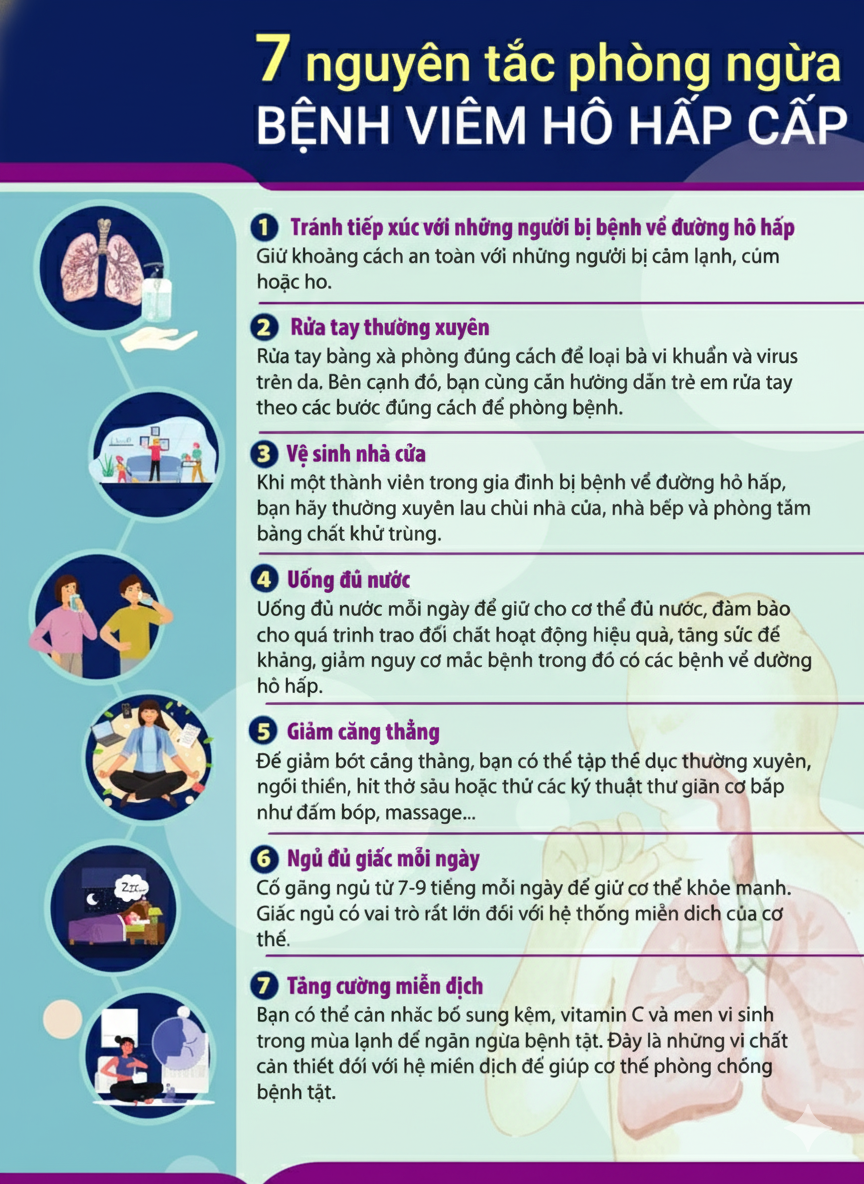 - Phòng bệnh: Tiêm vắc-xin phòng cúm mùa; giữ ấm cơ thể; ăn uống đủ chất; hạn chế tiếp xúc với người bệnh.