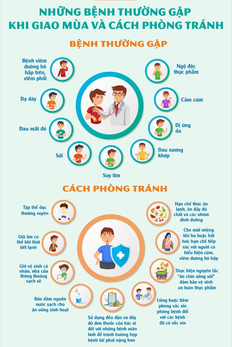 Các bệnh thường gặp trong giai đoạn này gồm: cảm cúm, viêm họng, viêm đường hô hấp cấp, đau mắt đỏ, sốt xuất huyết, tiêu chảy cấp…
