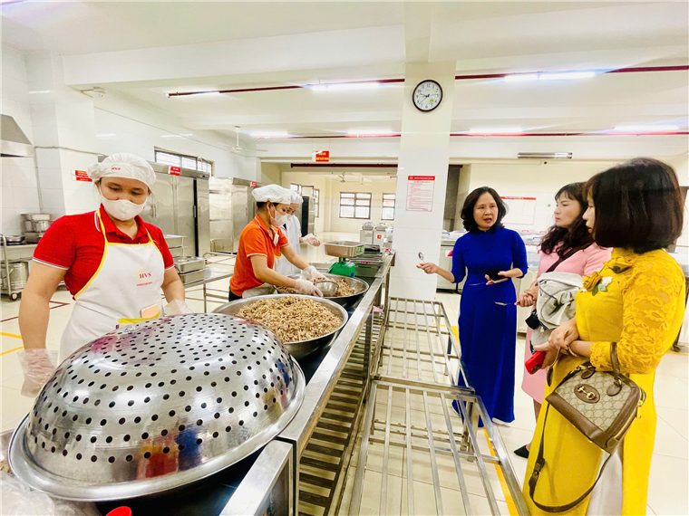 Đoàn tham quan nhà bếp phục vụ bữa ăn cho học sinh