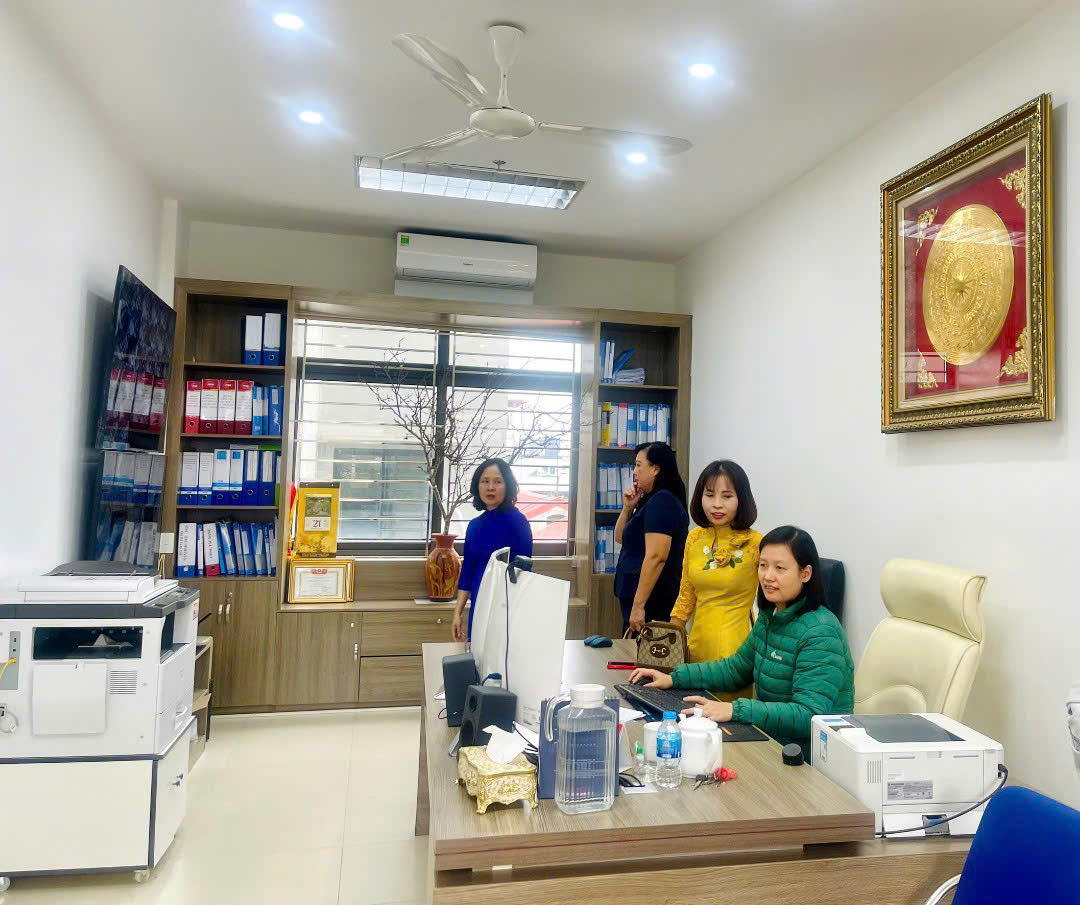 Đoàn tham quan mô hình chuyển đổi số, các phần mềm quản lý, hồ sơ chuyên môn trên Google Driver, hệ thống camera giám sát của trường Tiểu học Thành Công B