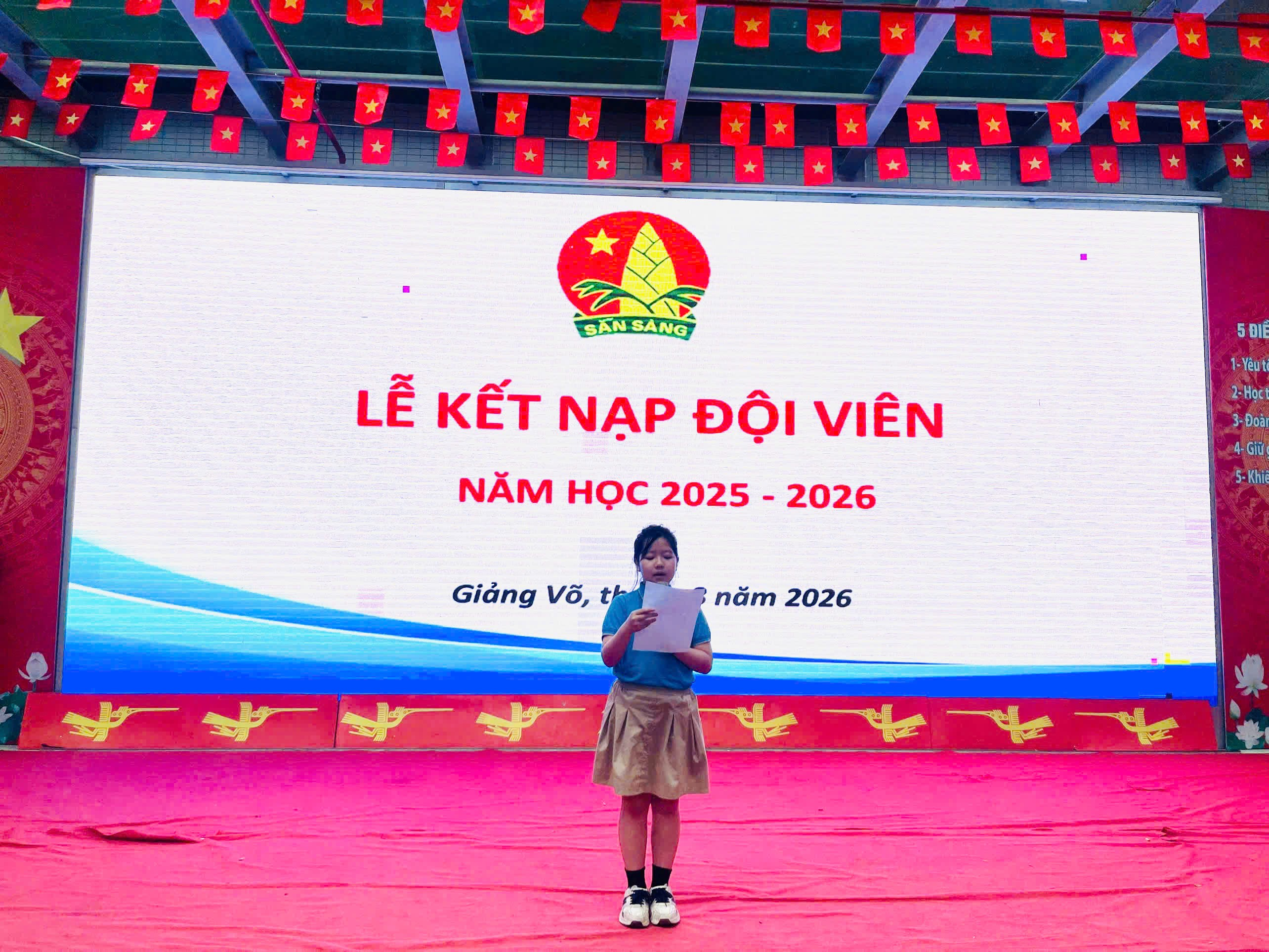 Khoảnh khắc chiếc khăn quàng đỏ thắm được trân trọng đặt lên vai không chỉ là niềm vinh dự mà còn là lời nhắc nhở mỗi đội viên về trách nhiệm học tập, rèn luyện và noi gương theo những giá trị tốt đẹp của Đội. Ánh mắt rạng rỡ, niềm tự hào hiện rõ trên từng gương mặt học sinh đã làm nên những hình ảnh thật đẹp và đáng nhớ của buổi lễ.