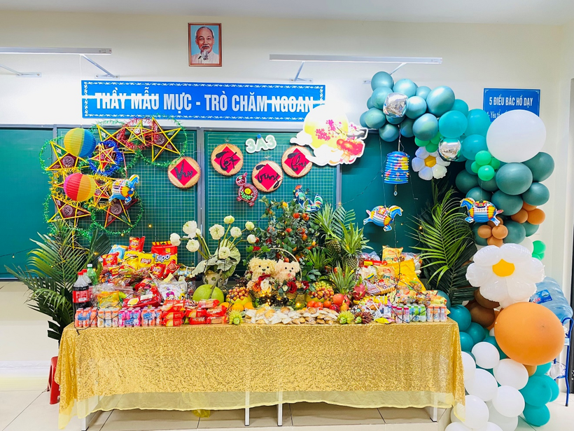 Thứ 6 đã tới, mỗi bạn mang đến lớp một ít bánh kẹo, sữa, bánh, hoa quả …. để góp vào mâm cỗ Trung thu của lớp.