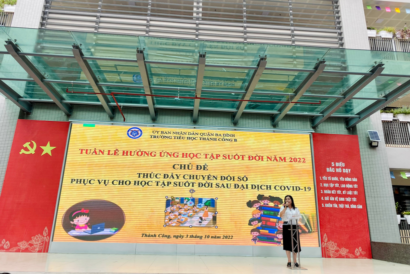 Phát động “Tuần lễ hưởng ứng học tập suốt đời” năm 2022 lồng ghép vào tiết Chào cờ với sự tham gia toàn thể CB, GV, NV, HS toàn trường diễn ra vào ngày 3/10/2022 (Thứ Hai) với chủ đề: “Thúc đẩy chuyển đổi số phục vụ cho học tập suốt đời sau đại dịch COVID-19”