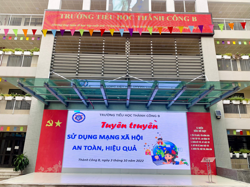 Chiếu màn hình Led sân trường tuyên truyền với khẩu hiệu: "Chuyển đổi số - phát triển học tập trong thời đại Công nghệ 4.0" từ 1/10-7/10/2022.