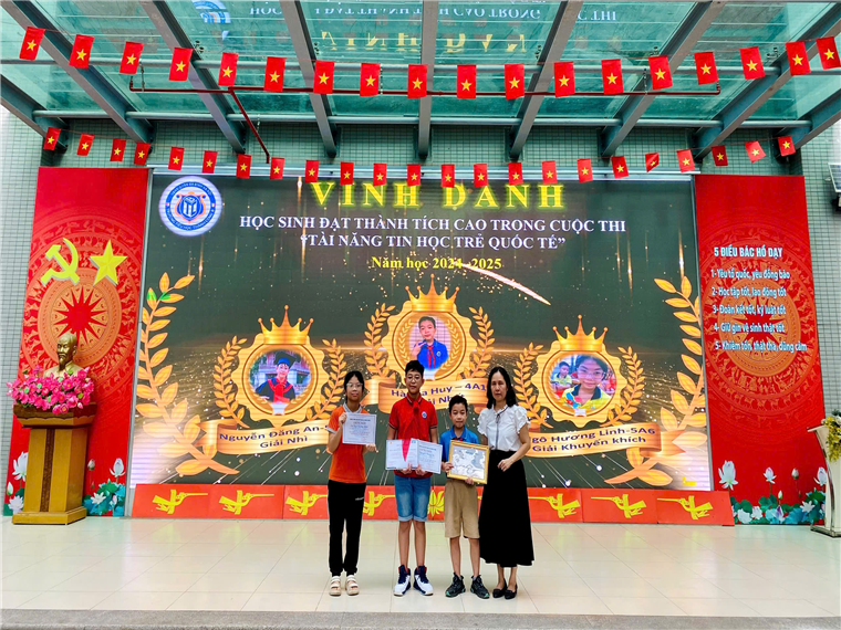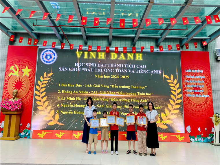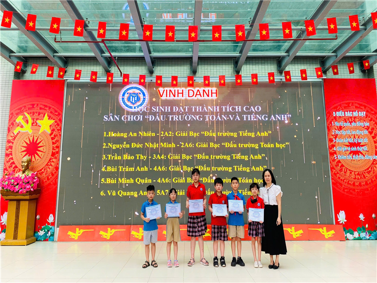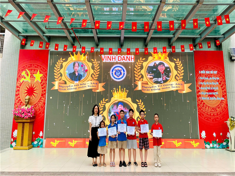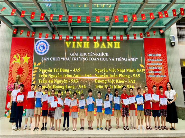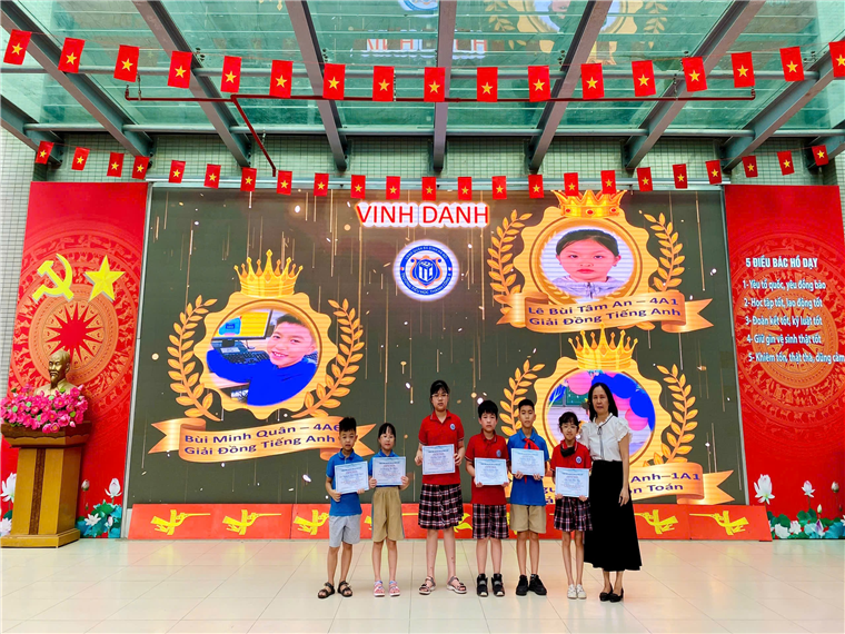 Các con học sinh đã viết tiếp câu chuyện hòa bình theo khả năng của mình, buổi sinh hoạt tiếp tục với lễ vinh danh các bạn đạt thành tích cao trong cuộc thi Đấu trường Toán học và Tiếng Anh cấp Quận, Tin học trẻ cấp Quận và cấp Thành phố.