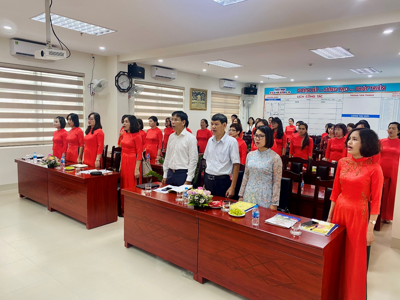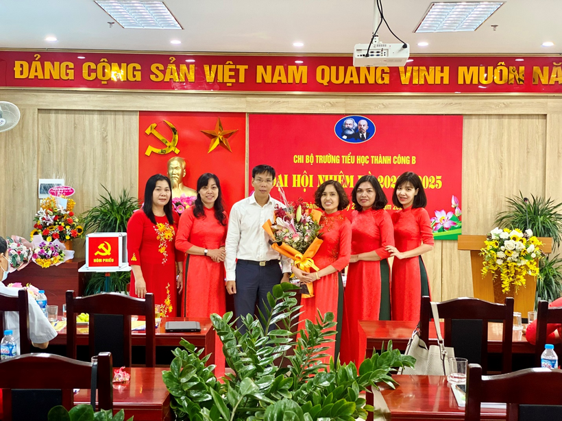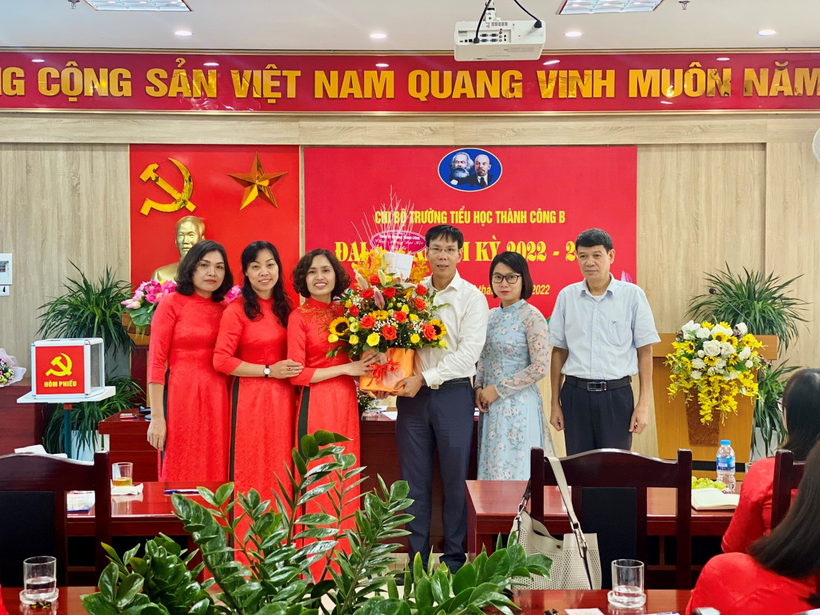 tặng hoa chúc mừng ban Chi ủy trường Tiểu học Thành Công B nhiệm kỳ 2022-2025