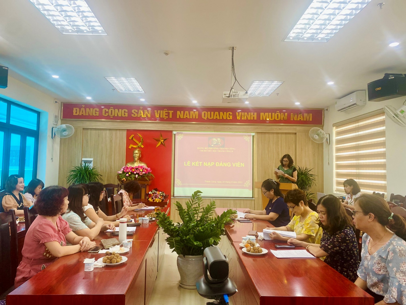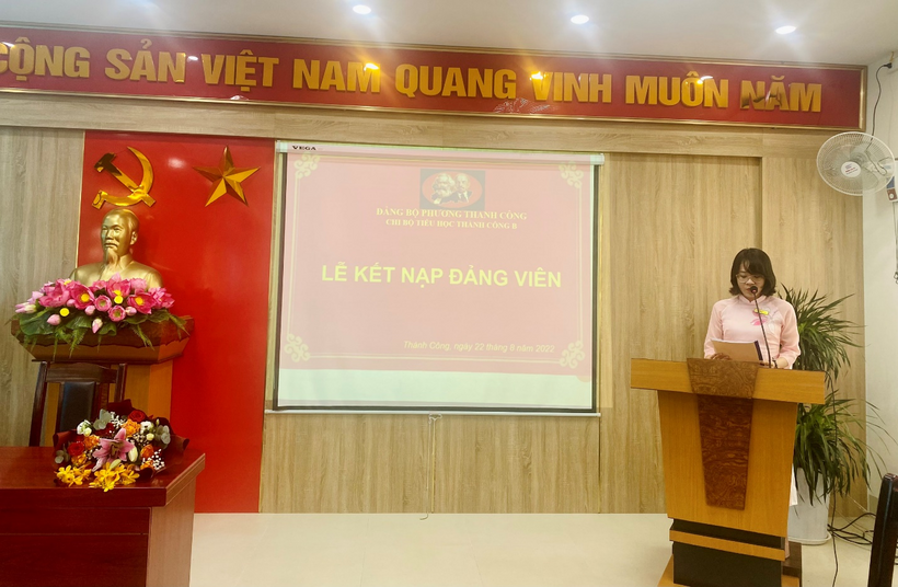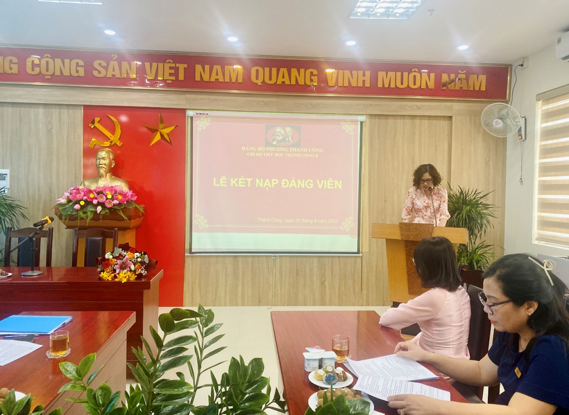 Bồi dưỡng, kết nạp đảng viên mới là nhiệm vụ thường xuyên được Chi bộ Trường Tiểu học Thành Công B rất quan tâm. Việc giáo viên trẻ được kết nạp Đảng đã khẳng định sự cố gắng tu dưỡng, rèn luyện của các đồng chí . Đây chính là những tấm gương sáng để các giáo viên trẻ tiếp theo phấn đấu. Buổi lễ kết nạp đảng viên đã diễn ra thành công tốt đẹp.