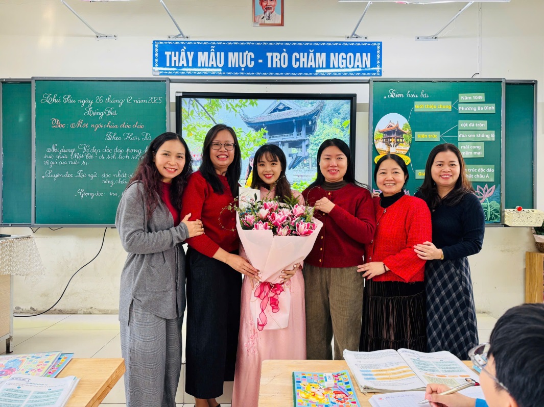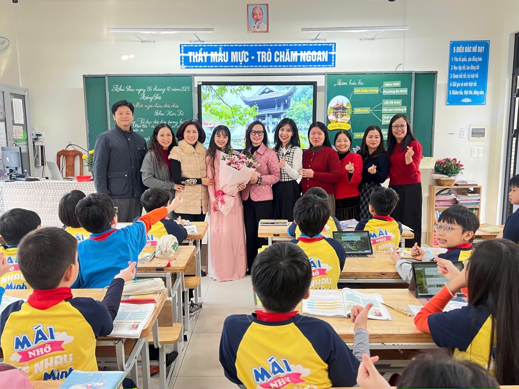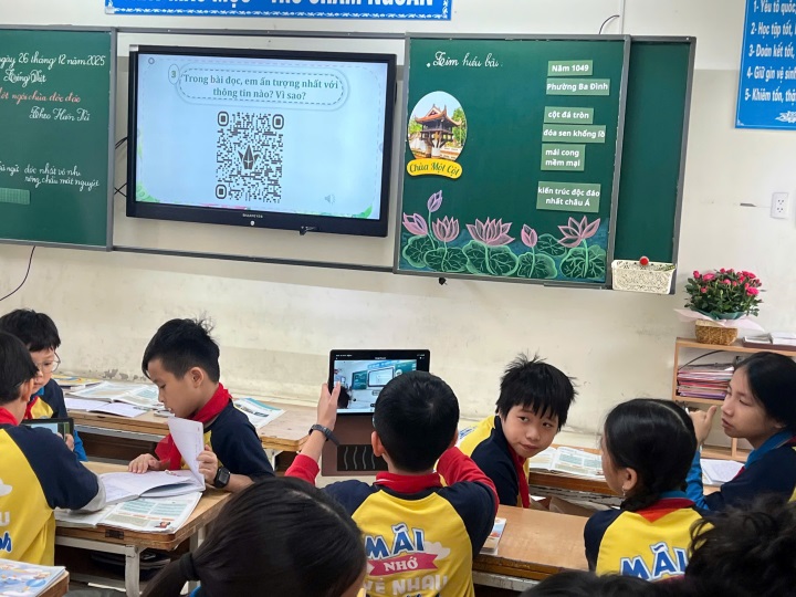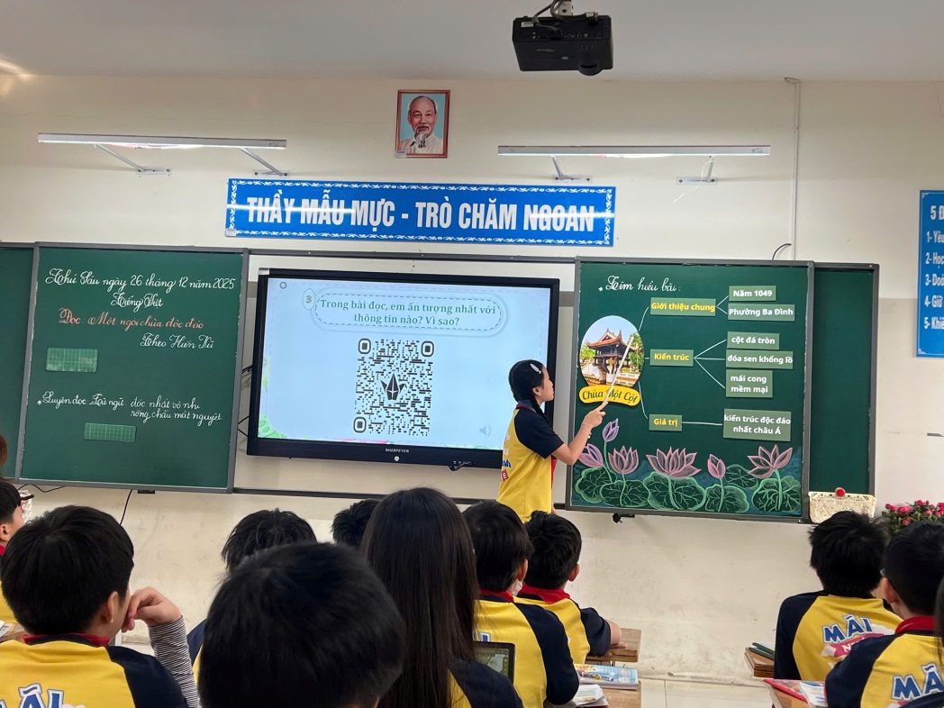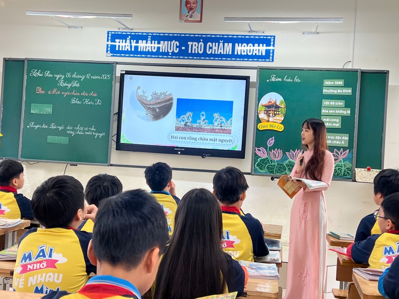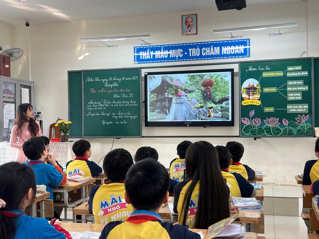 Điểm nổi bật của tiết học chính là sự lồng ghép tinh tế giáo dục lịch sử địa phương, giúp học sinh hiểu rằng mỗi di tích không chỉ là một công trình kiến trúc, mà còn là chứng nhân lịch sử, là nơi kết tinh trí tuệ, tâm hồn và bản sắc dân tộc. Qua lời giảng truyền cảm của cô giáo, chùa Một Cột hiện lên không còn là hình ảnh trong sách vở, mà trở thành niềm tự hào về quê hương, về đất nước, khơi dậy trong các em tình yêu và ý thức gìn giữ di sản văn hóa dân tộc.