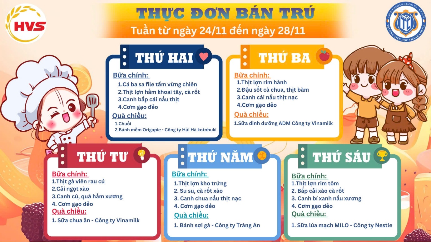 Thực đơn bán trú 24/11 đến ngày 28/11