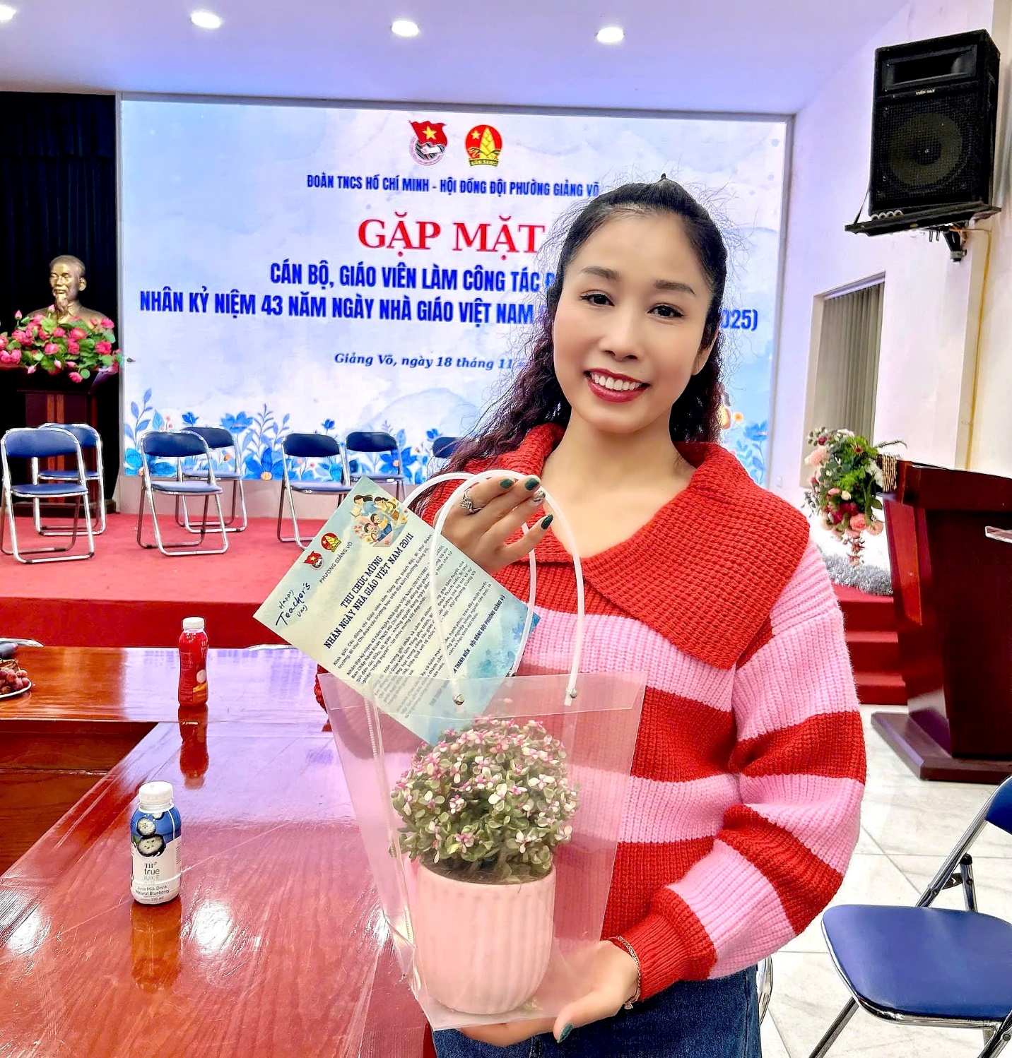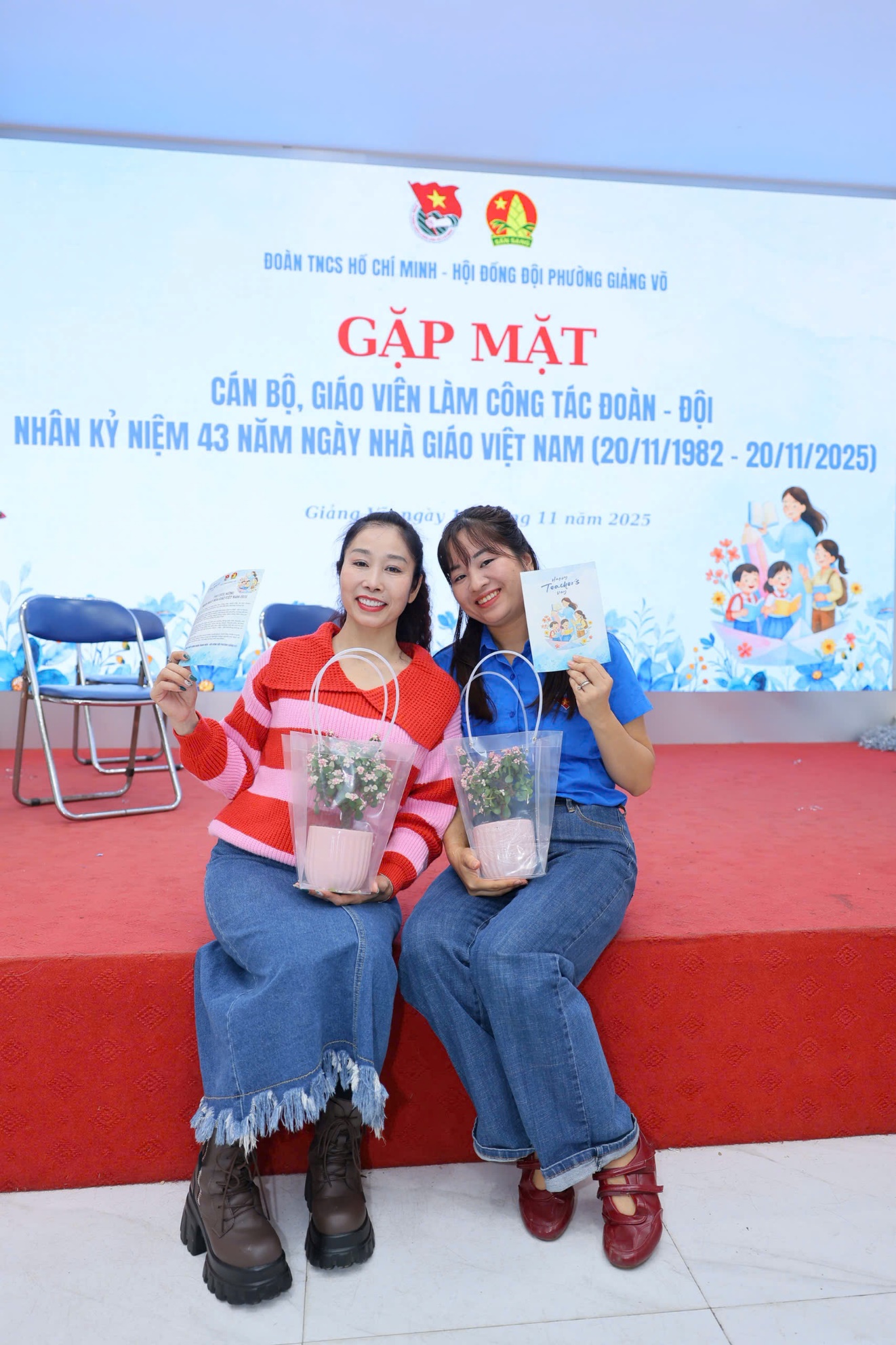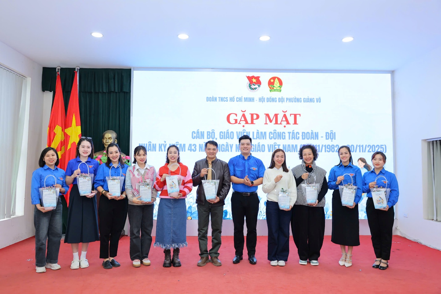 Trong khuôn khổ chương trình, Ban Tổ chức đã dành thời gian trang trọng để trao tặng những phần quà tri ân tới các đại biểu tham dự và các thầy cô làm công tác Đoàn – Đội. Những món quà tuy giản dị nhưng chứa đựng tình cảm chân thành của Đoàn – Đội phường Giảng Võ, thể hiện sự trân trọng đối với những đóng góp bền bỉ, thầm lặng của các thầy cô trong sự nghiệp chăm sóc, giáo dục và rèn luyện thế hệ măng non.
