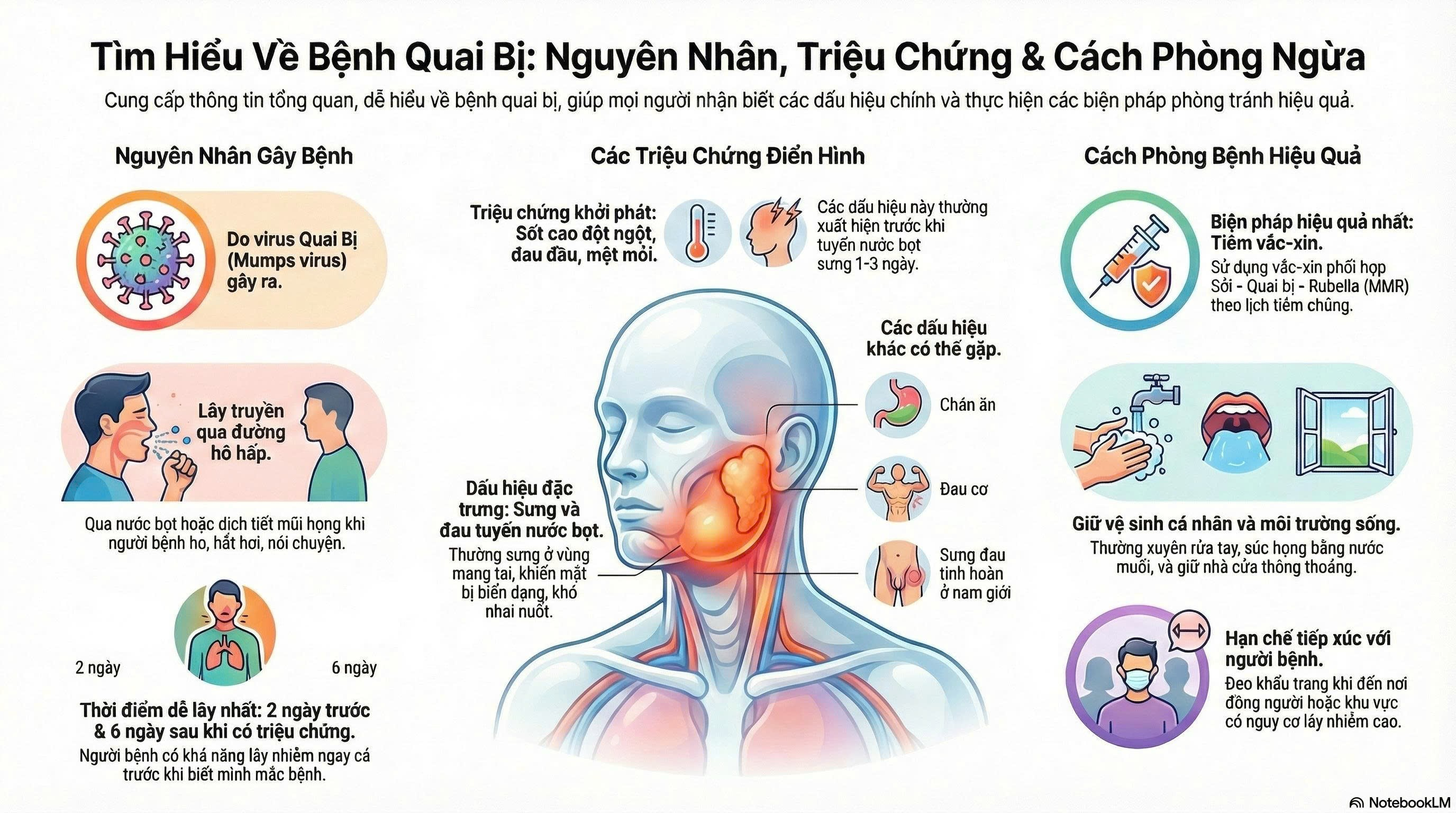 Bệnh quai bị là một bệnh nhiễm trùng cấp tính do virus gây nên. Bệnh dễ lan truyền từ người này sang người khác một cách dễ dàng và thường xảy ra vào mùa thu, mùa đông khi thời tiết bắt đầu chuyển lạnh, và bệnh gia tăng theo mùa.