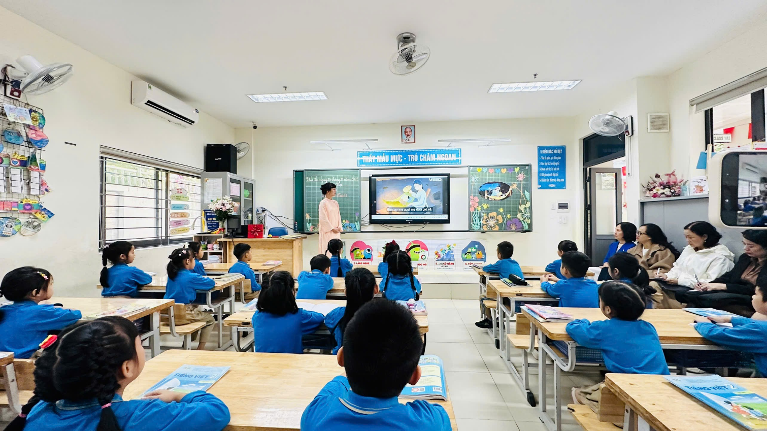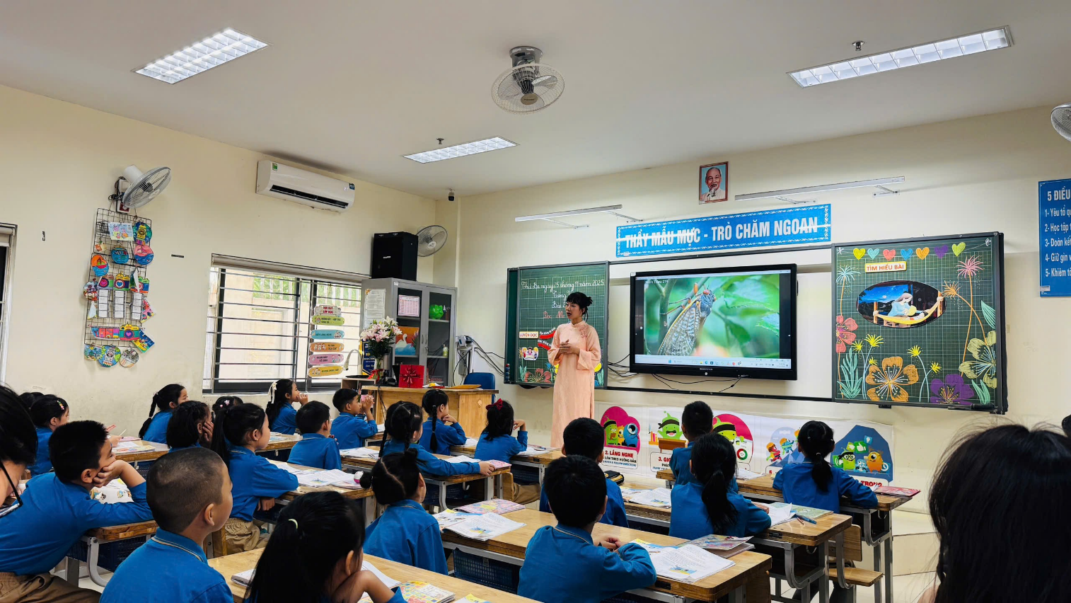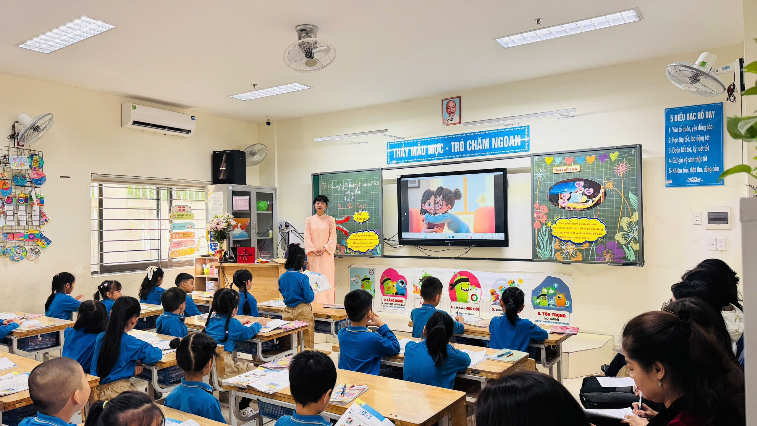 Tiết dạy lần này cũng chính là bài học đã mang lại cho cô Giang giải Nhất trong Hội thi Giáo viên dạy giỏi – Chủ nhiệm giỏi cấp Thành phố năm học 2024–2025. Vì vậy, từ khâu chuẩn bị đến triển khai, tiết học đều thể hiện sự chỉn chu, linh hoạt và phương pháp sư phạm chắc chắn của một giáo viên giỏi cấp thành phố.