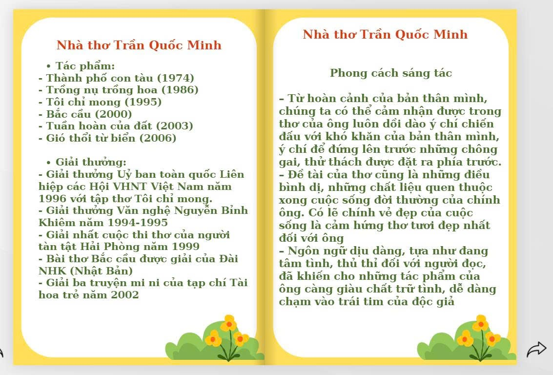Học sinh được tham gia đa dạng các hình thức hoạt động: làm việc cá nhân, thảo luận nhóm, thi đua theo tổ, chơi trò chơi trắc nghiệm nhanh, mở Ô cửa bí mật để khám phá nội dung bài. Những hoạt động này không chỉ giúp các em hiểu sâu hơn vẻ đẹp của lời thơ mà còn tạo nên bầu không khí học tập vui tươi, rộn ràng, thúc đẩy sự tự tin và chủ động của học sinh.