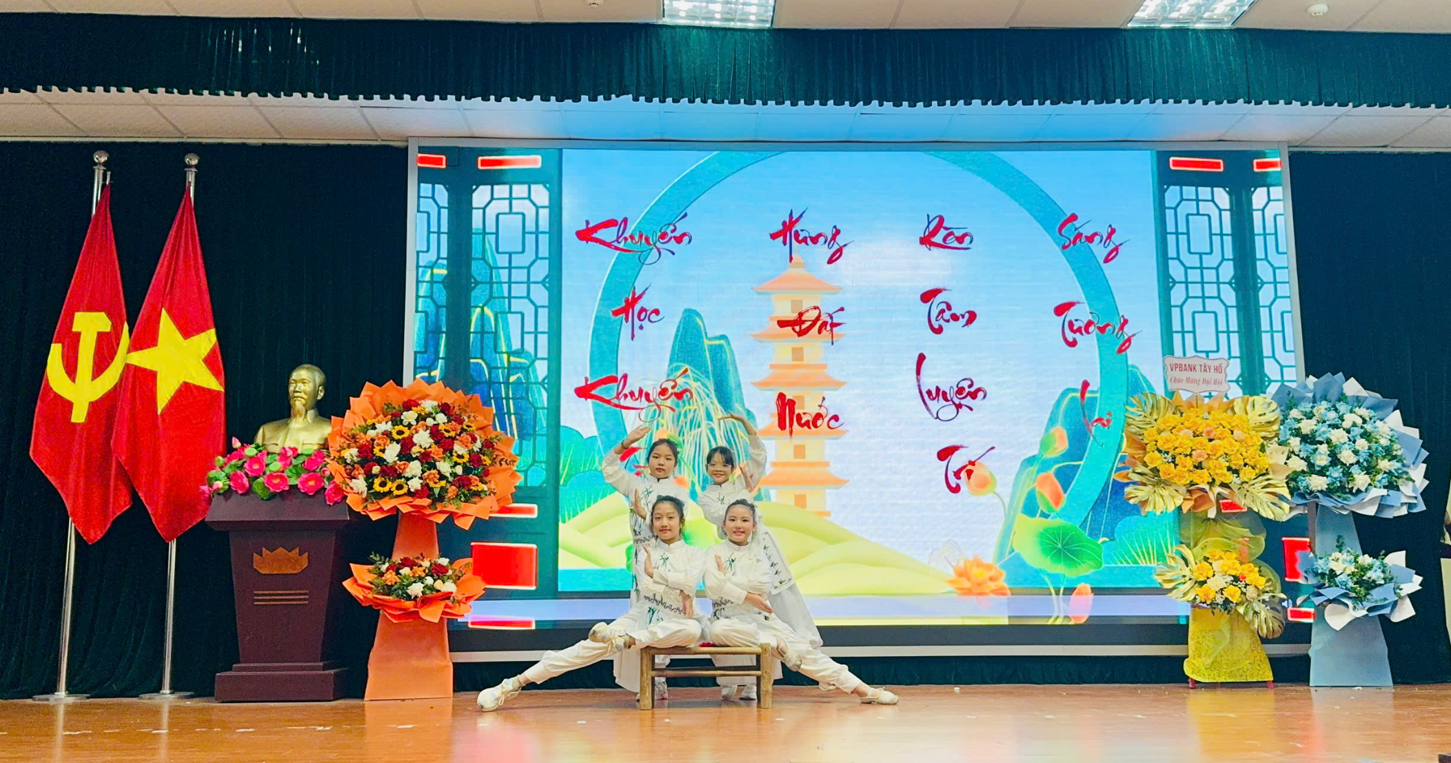 Hai tiết mục nghệ thuật do các em học sinh nhà trường biểu diễn đã để lại những ấn tượng sâu đậm, góp phần làm nên không khí trang trọng, lắng đọng và giàu tính nhân văn cho Đại hội.