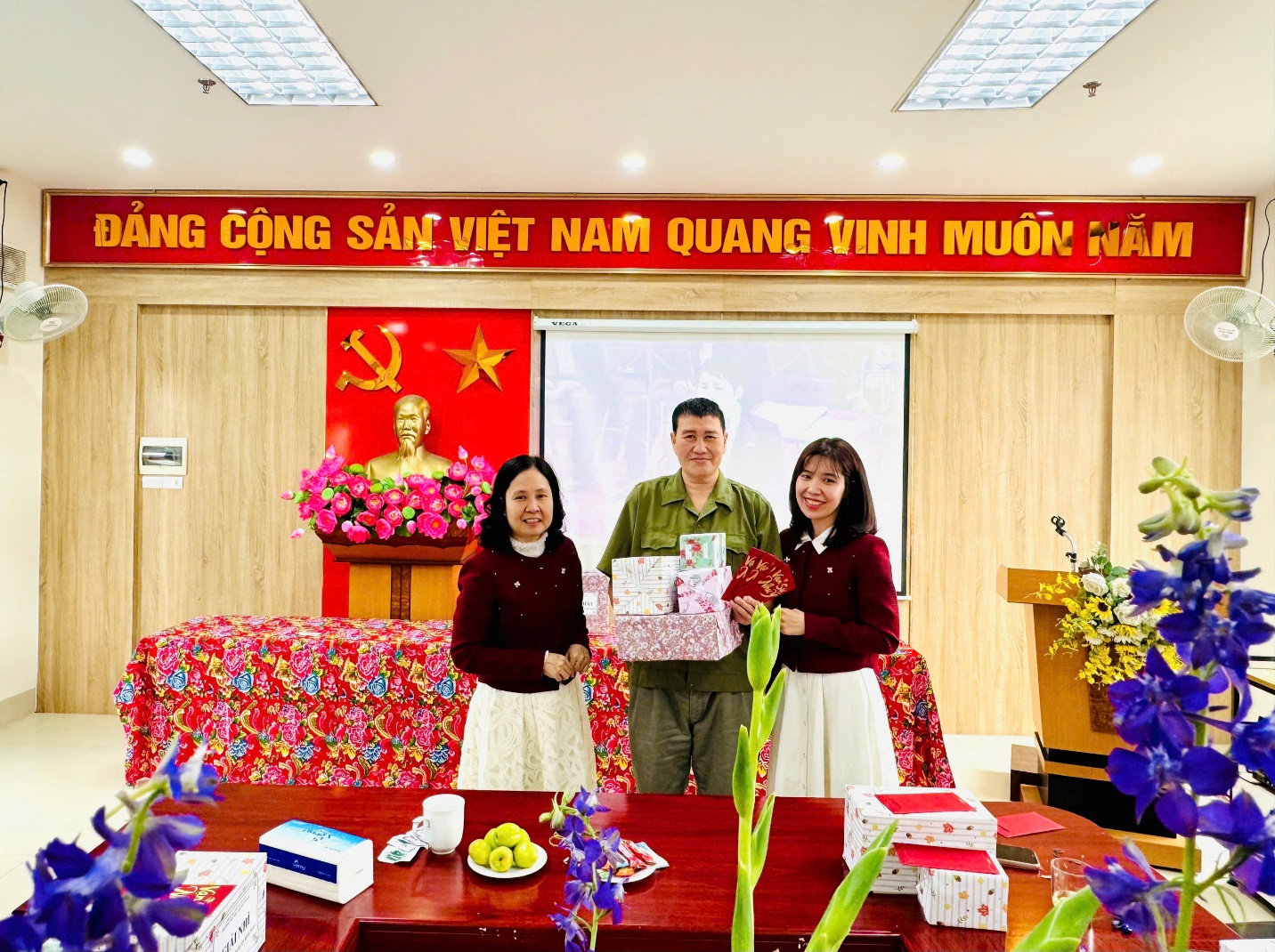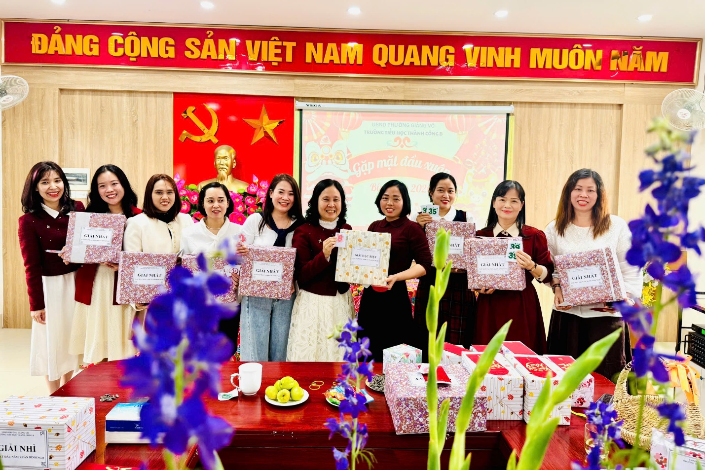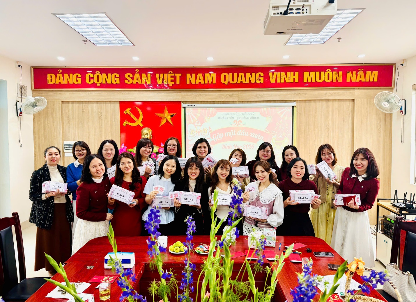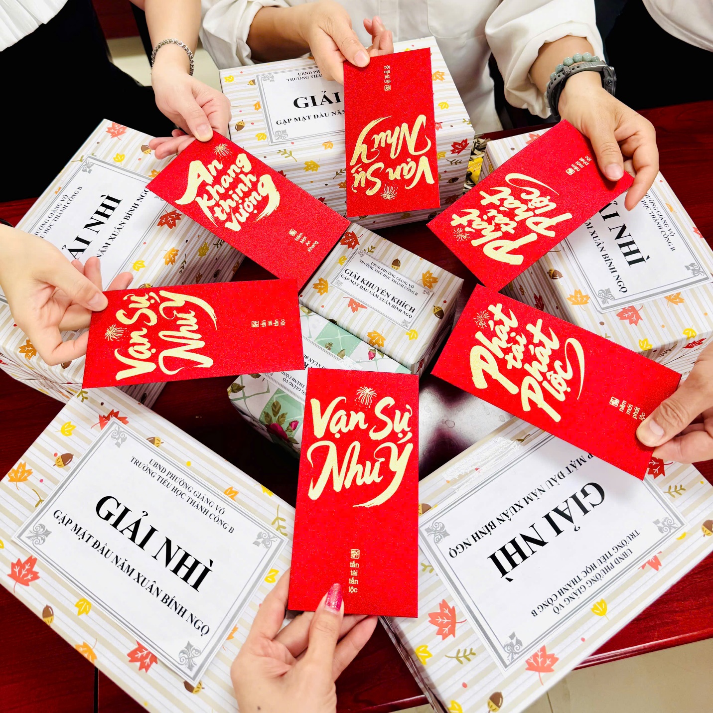 Ngay sau những lời chúc mừng tốt đẹp, Ban Giám hiệu nhà trường đã trân trọng trao gửi những phong bao lì xì đỏ thắm tới tận tay toàn thể hội đồng sư phạm. Từng nụ cười rạng rỡ đọng trên môi, từng cái bắt tay thật chặt đã làm bừng sáng thêm bầu không khí thân tình. Món quà nhỏ nhưng chứa đựng ý nghĩa lớn lao, mang theo lộc xuân và niềm tin về một năm mới may mắn, hanh thông, vạn sự như ý đến với mọi thành viên.