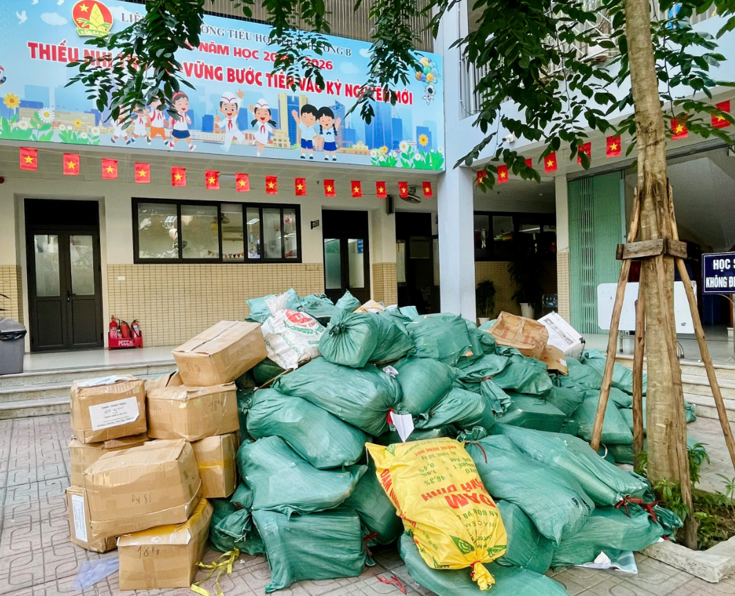 Kết quả, trong Ngày hội thu “Kế hoạch nhỏ” đợt I năm học 2025 – 2026, Liên đội Trường Tiểu học Thành Công B đã thu được 5.799 kg giấy loại.