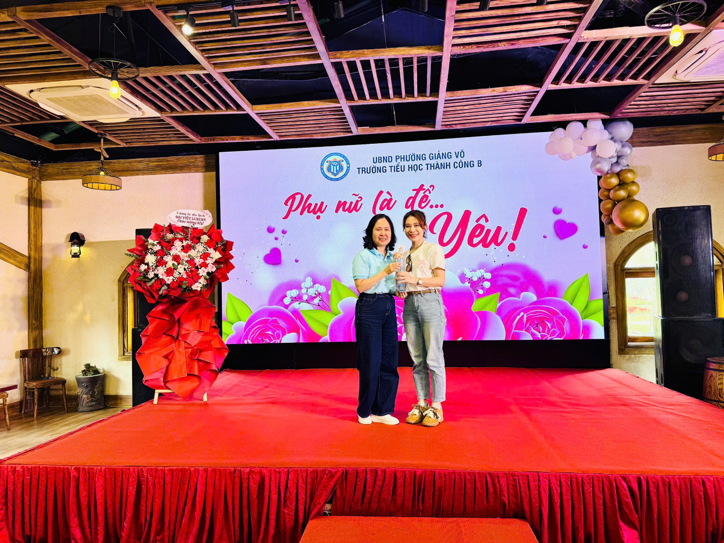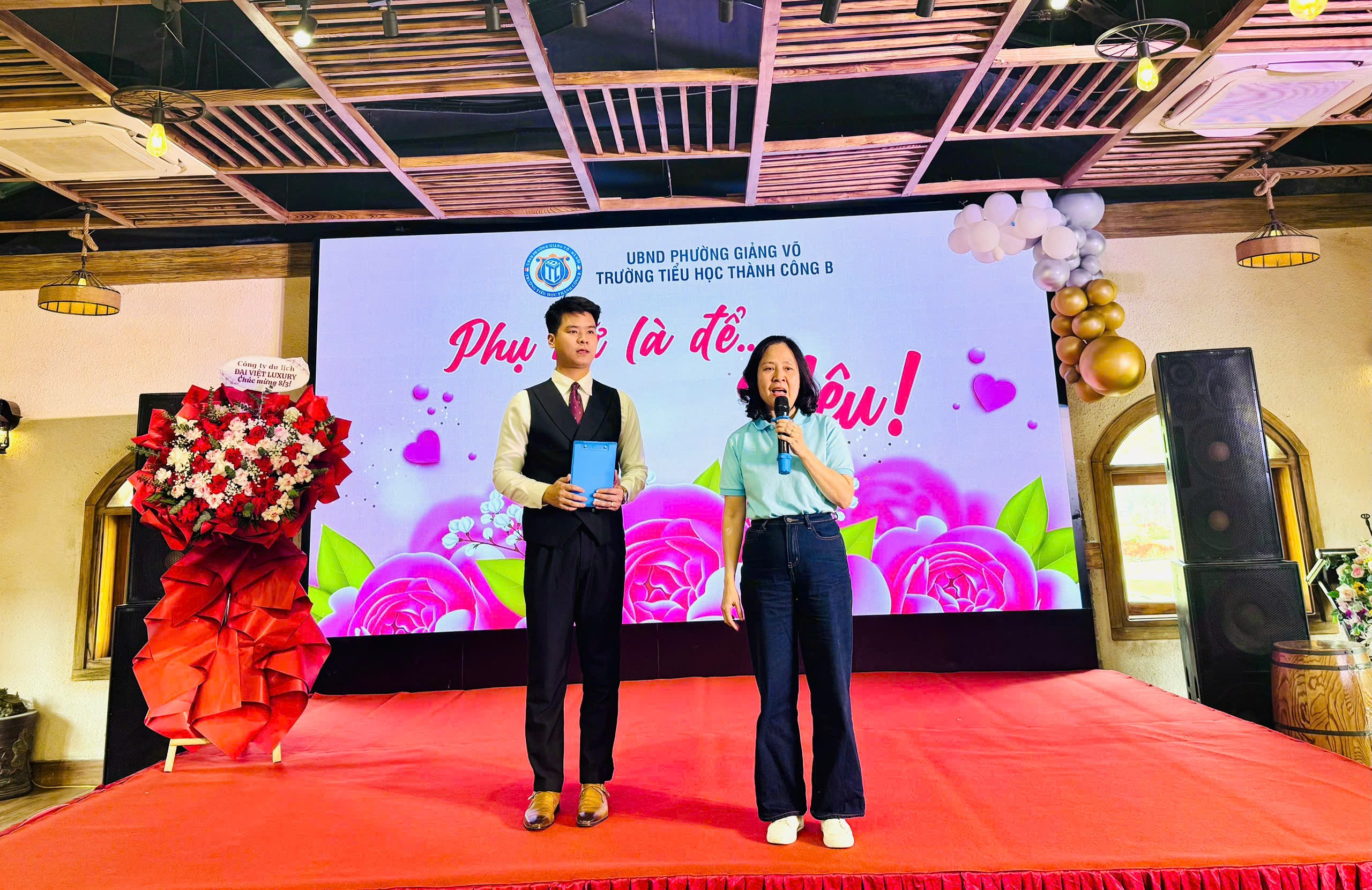 Mở đầu chương trình, cô Hiệu trưởng Phạm Minh Thảo đã thay mặt Ban Giám hiệu và toàn thể nhà trường gửi tới các cô giáo, nhân viên nữ những lời chúc mừng tốt đẹp và thắm thiết nhất. Trong lời phát biểu đầy chân thành, cô bày tỏ sự trân trọng đối với những đóng góp thầm lặng nhưng vô cùng quan trọng của các cô trong công tác giảng dạy, chăm sóc học sinh cũng như trong các hoạt động chung của nhà trường. Những lời chúc ý nghĩa đã mang đến bầu không khí ấm áp, gắn kết và tràn đầy niềm vui trong ngày đặc biệt dành cho phái đẹp.