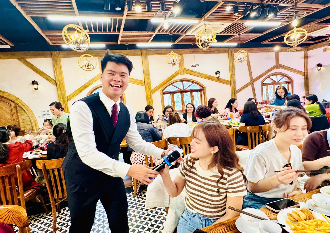 Tiếp nối chương trình, không khí trở nên sôi nổi và rộn ràng hơn với phần giao lưu trò chơi vui nhộn do MC duyên dáng của chương trình dẫn dắt. Các cô giáo hào hứng tham gia các trò chơi như “Nghe nhạc đoán chương trình” và “Đuổi hình bắt chữ”. Tiếng cười, những câu trả lời bất ngờ và tinh thần cổ vũ nhiệt tình đã khiến không khí buổi gặp mặt thêm phần náo nhiệt. Những hoạt động tập thể ấy không chỉ mang lại niềm vui mà còn giúp các cô giáo thêm gắn bó, sẻ chia và thắt chặt tình đồng nghiệp.