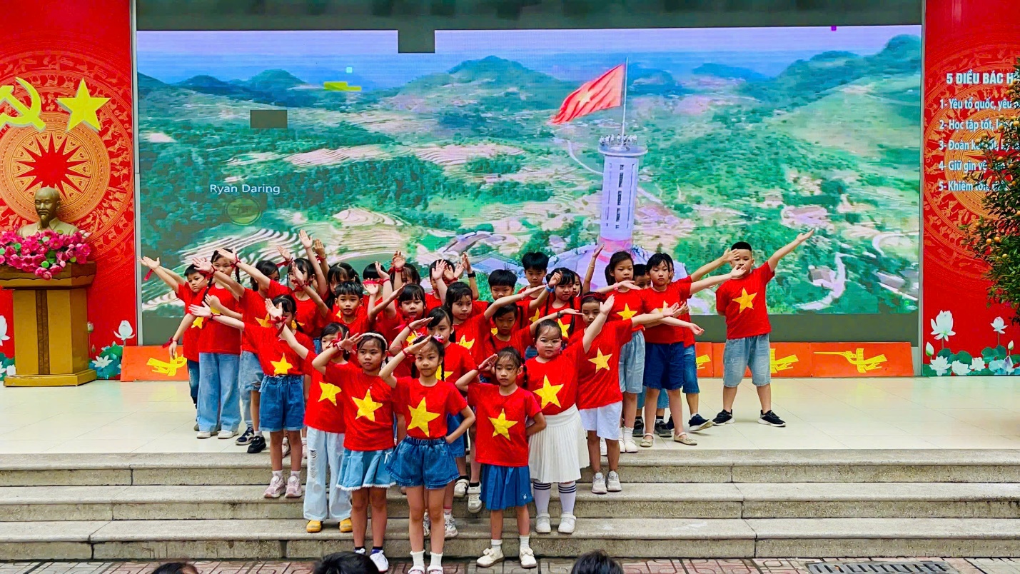 Giai điệu hào hùng, quen thuộc vang lên trong tiếng vỗ tay nhịp nhàng của các con học sinh, tạo nên một bầu không khí vô cùng thiêng liêng và náo nức. Những ca từ giản dị nhưng chứa đựng sức mạnh tinh thần to lớn ấy không chỉ kết nối các thế hệ dưới mái trường, mà còn như một lời hứa của các bạn nhỏ: sẽ luôn ghi nhớ công ơn của Bác và các thế hệ cha anh, quyết tâm học tập tốt để xây dựng đất nước ngày càng giàu đẹp, văn minh.