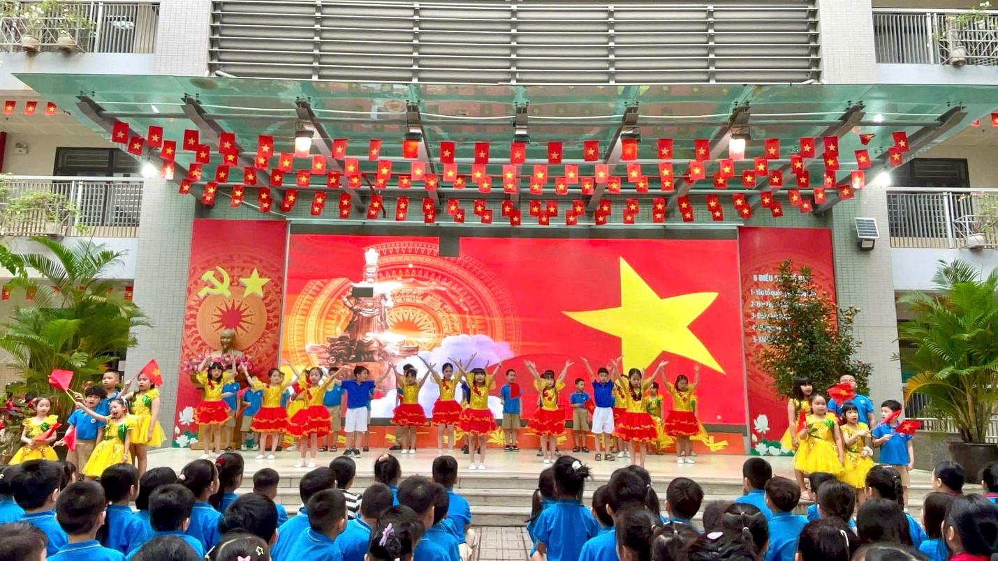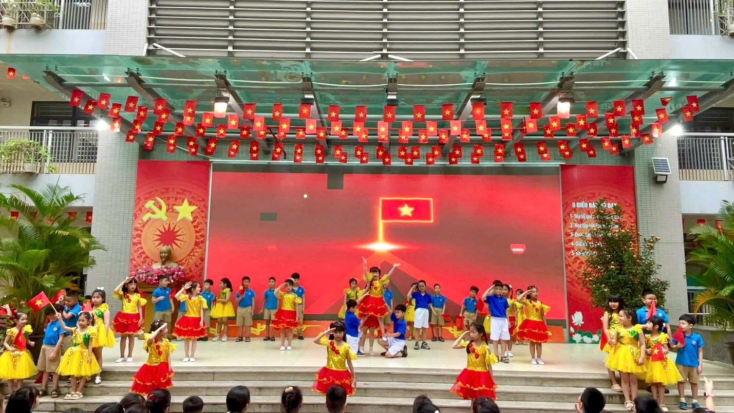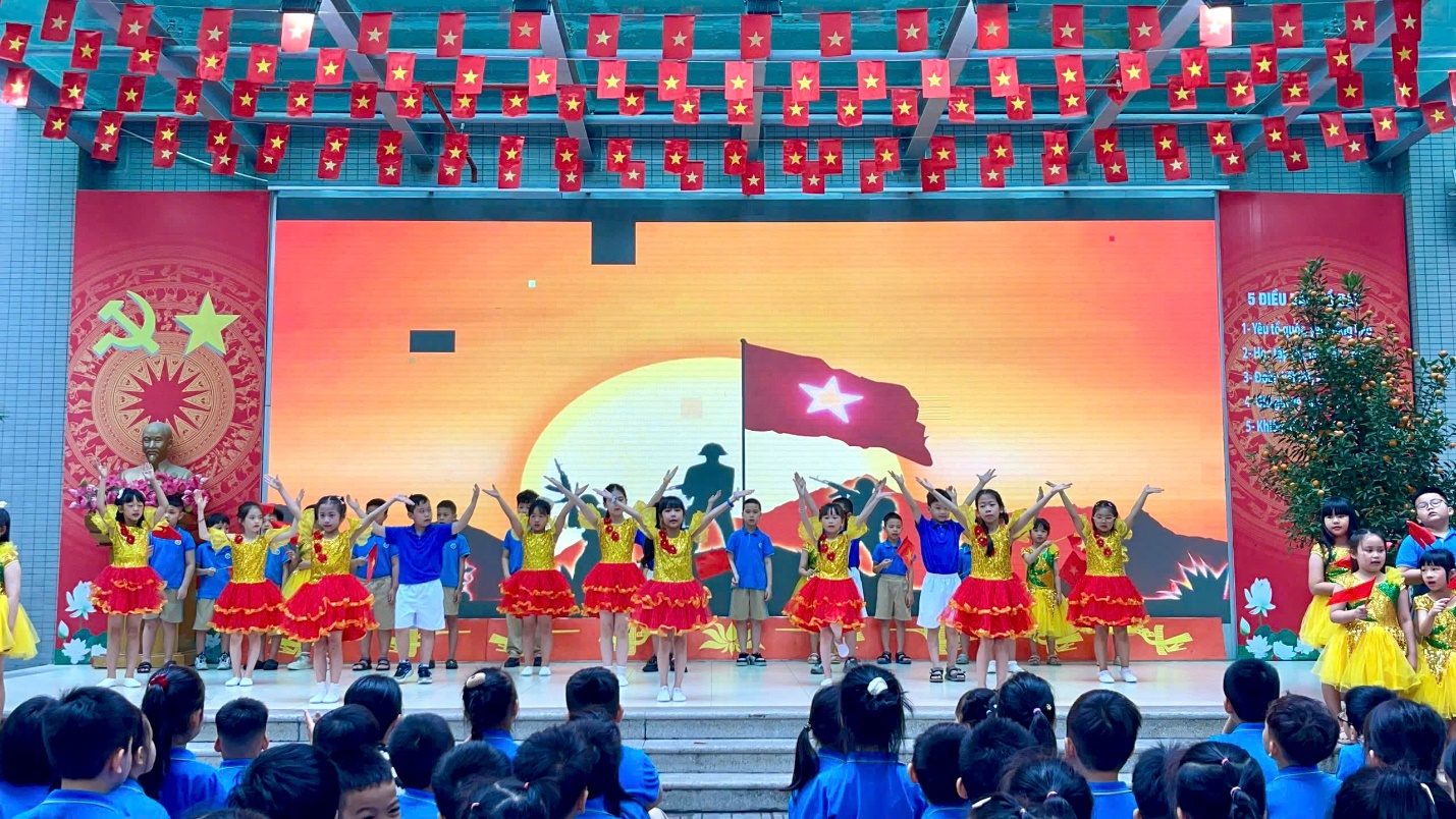 Không khí buổi lễ càng thêm phần sôi động và hào hứng với chương trình văn nghệ chào mừng đến từ các tập thể lớp khối 2. Mỗi tiết mục đều mang một sắc thái riêng nhưng tất cả đều toát lên tinh thần yêu nước và sức trẻ rạng rỡ: