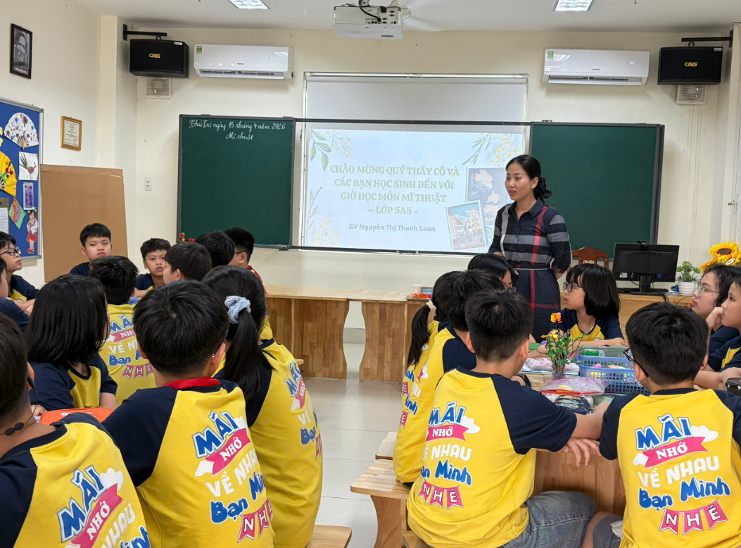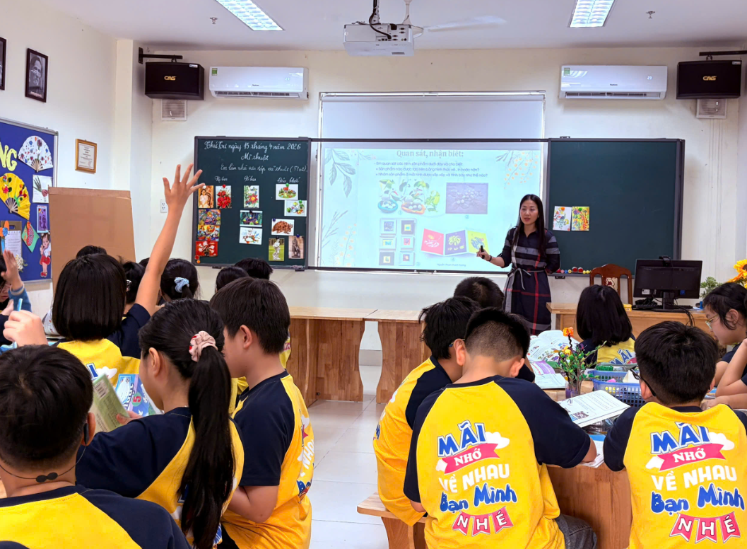 Đặc biệt, nội dung kiến thức về Đồ họa – Hội họa – Điêu khắc vốn mang tính học thuật, tương đối khó và trừu tượng đối với học sinh lớp 5. Tuy nhiên, bằng sự khéo léo, linh hoạt trong tổ chức dạy học, cô giáo đã giúp các em tiếp cận kiến thức một cách gần gũi, dễ hiểu và giàu tính ứng dụng trong cuộc sống. Thông qua các ví dụ thực tế, hình ảnh trực quan, video minh họa sinh động, học sinh không chỉ “hiểu” mà còn “cảm” được cái đẹp trong từng loại hình nghệ thuật.