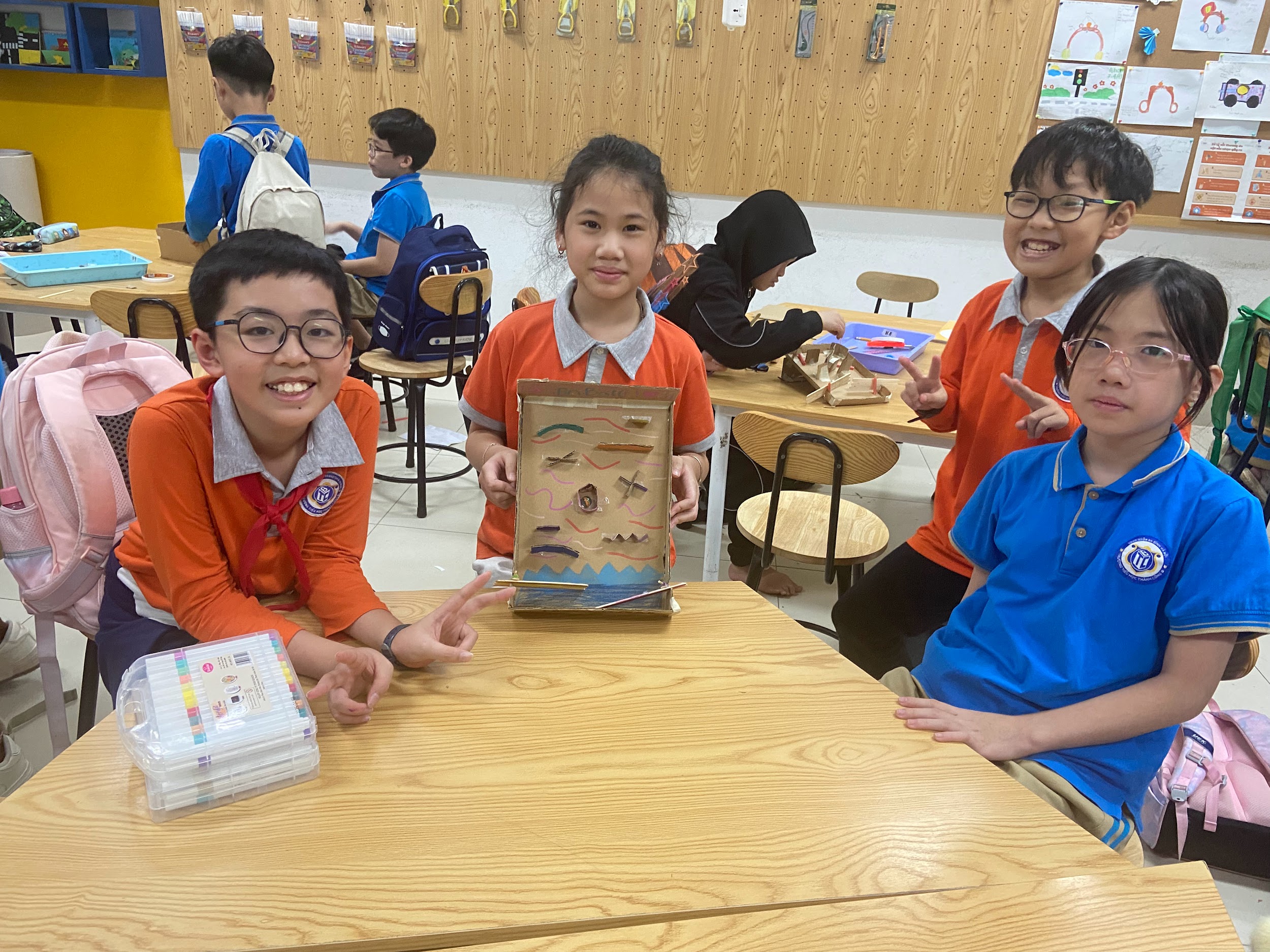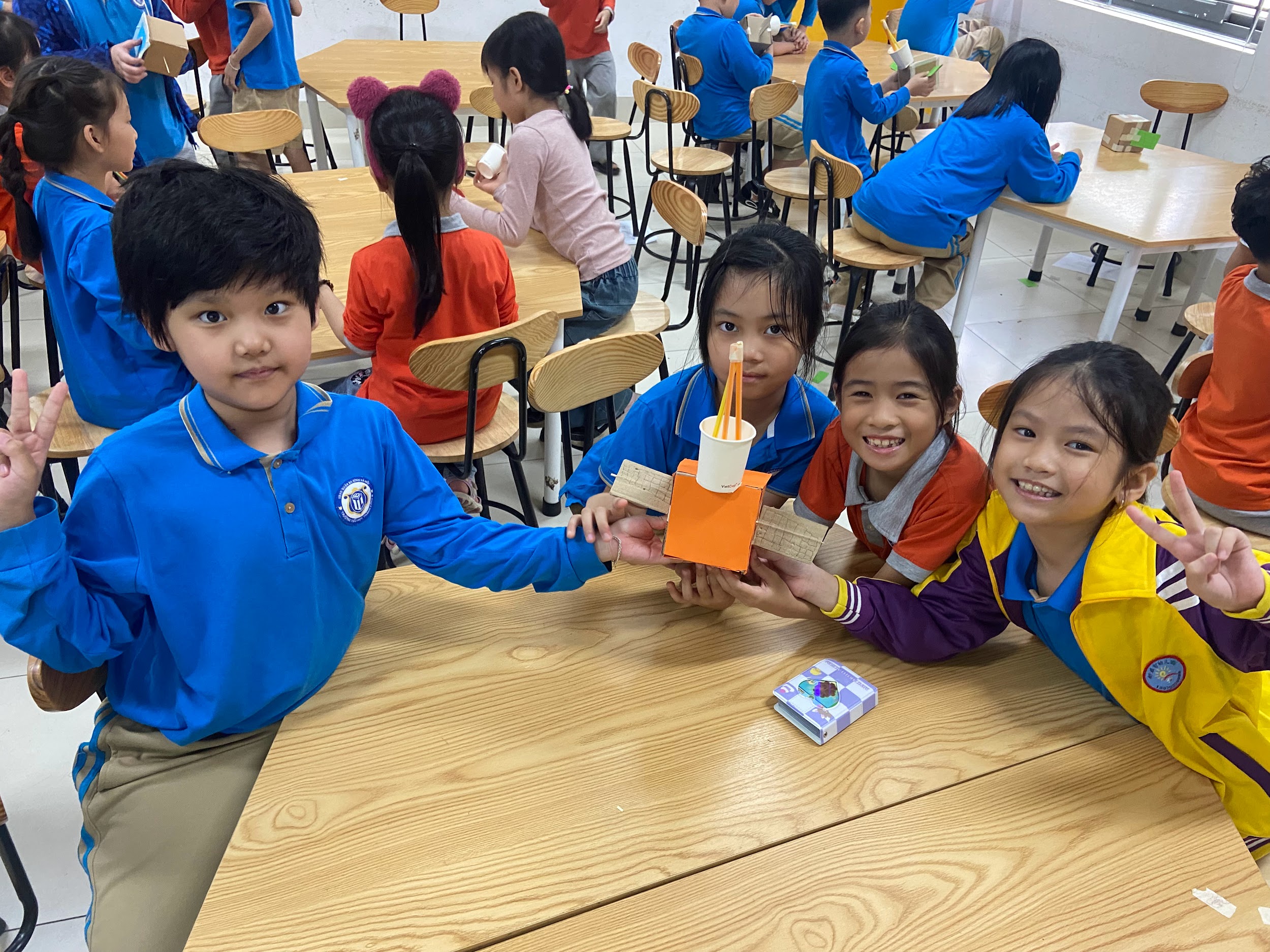 Trong học phần “Dự án Sáng chế”, học sinh từ khối 1 đến khối 5 được tham gia vào chuỗi hoạt động khám phá và sáng tạo gắn với kiến thức của chương trình Giáo dục Phổ thông. Mỗi dự án đều đặt học sinh vào tình huống thực tiễn, nơi các em phải quan sát – đặt câu hỏi – tìm giải pháp và tự tay tạo nên sản phẩm của mình.
