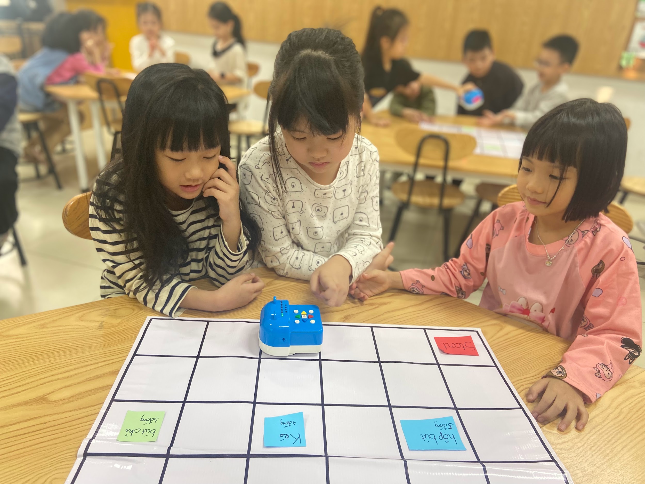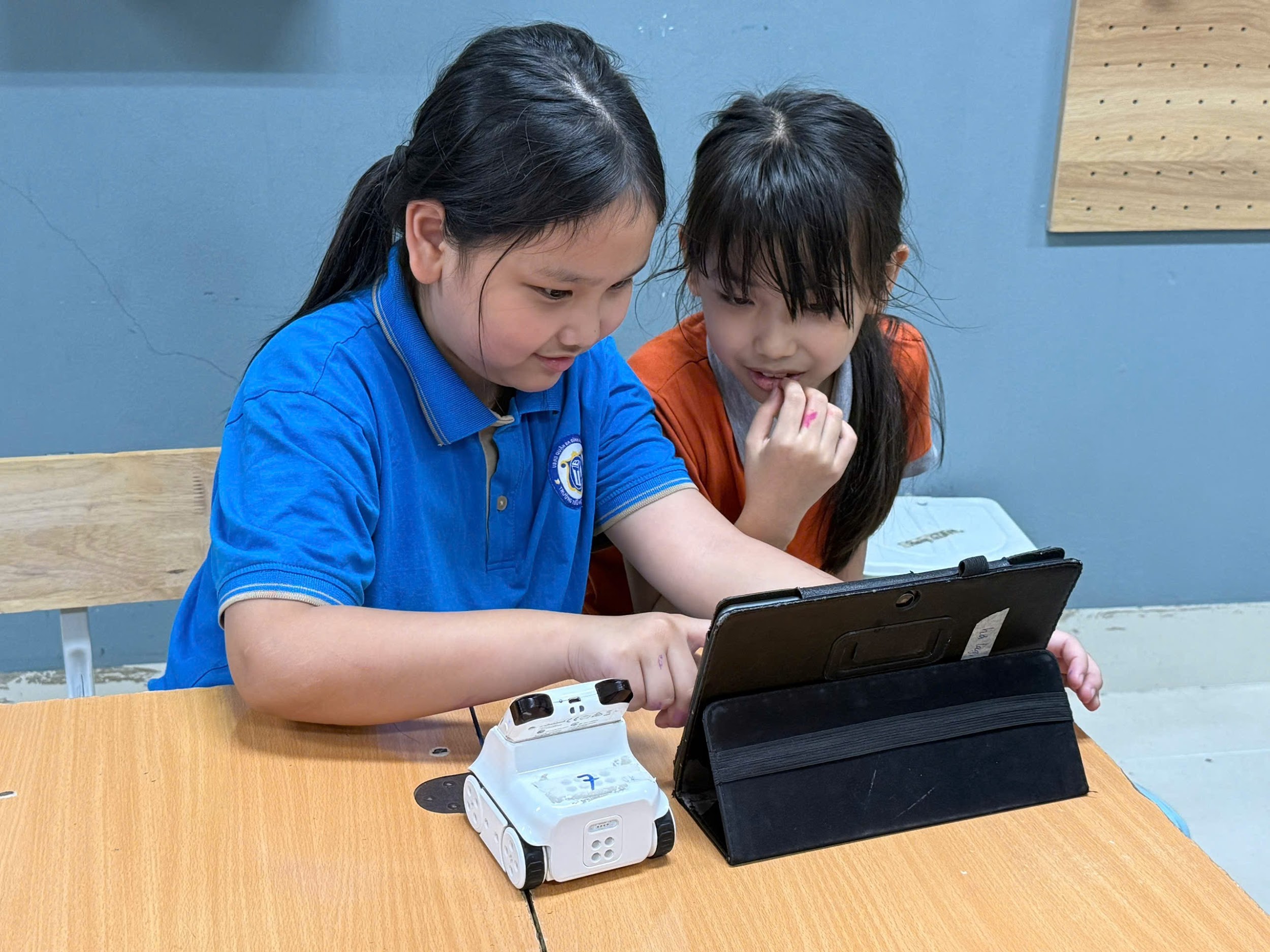 Ở học phần này, học sinh khối 4 chuyển từ lập trình trên màn hình sang điều khiển một robot thật – robot Codey. Các em được lập trình để robot thực hiện nhiều nhiệm vụ khác nhau như di chuyển theo đường, thể hiện cảm xúc, phát âm thanh…